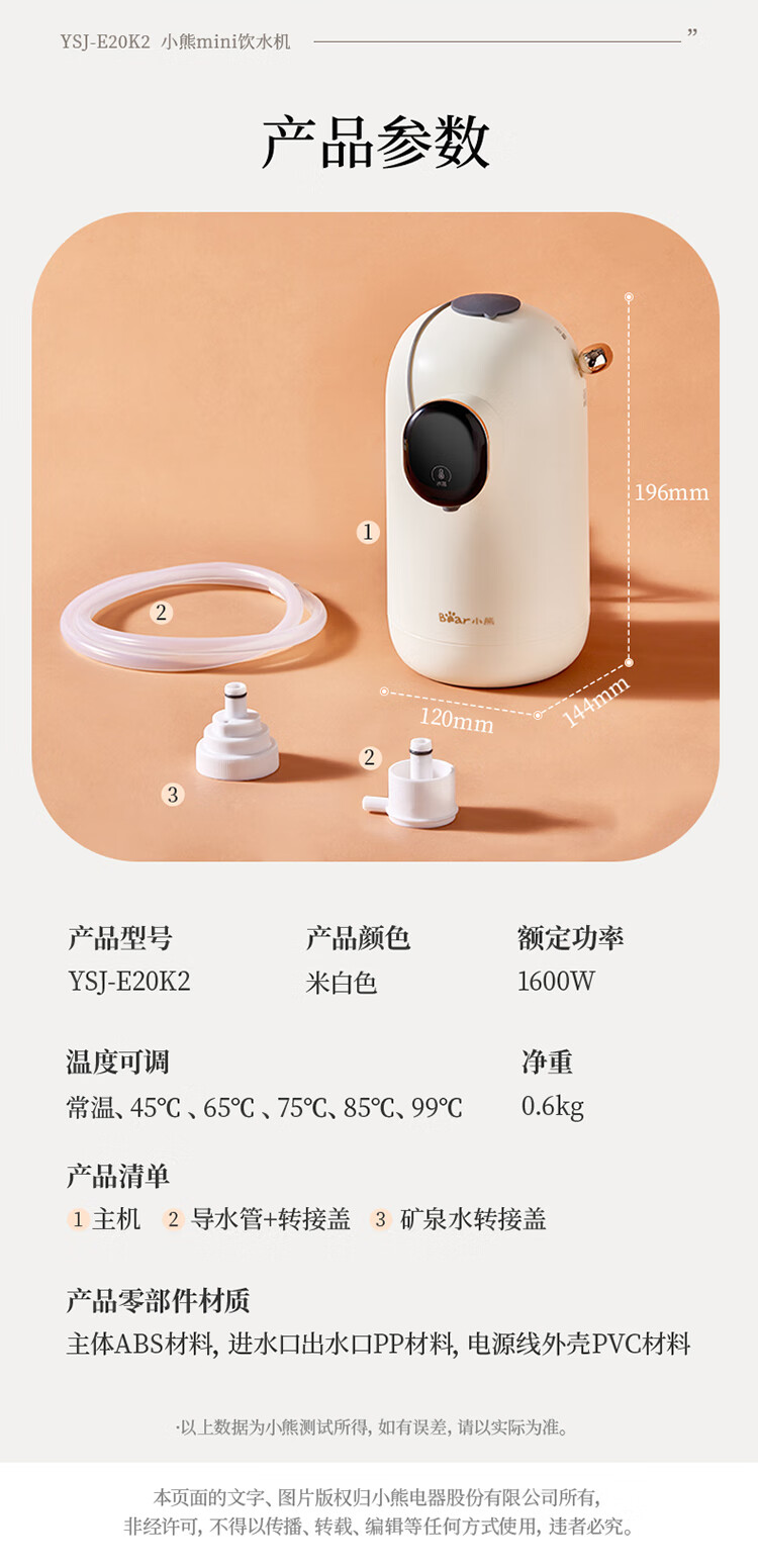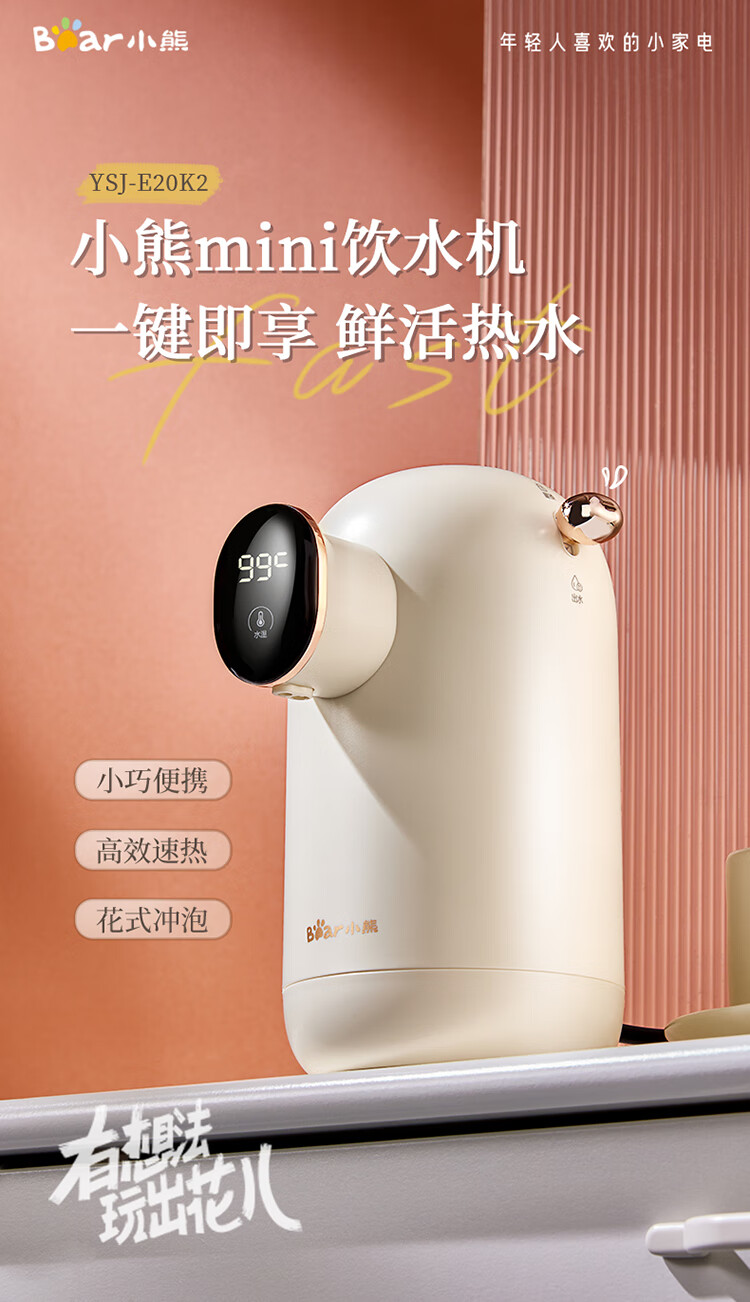 小熊(Bear)即热式饮水机便携式烧水壶 家用小型迷你速热饮水机YSJ-E20K2
