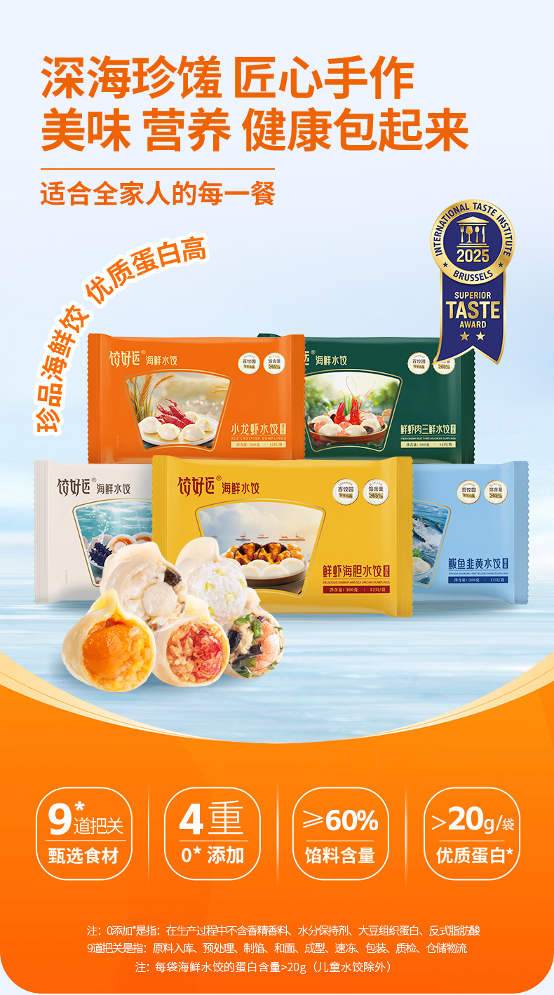 优选丨【饺好运海鲜水饺】双贝海参+鲜虾海胆+鲜虾肉三鲜+小龙虾+鲅鱼韭黄 珍品海鲜饺 优质蛋白高
