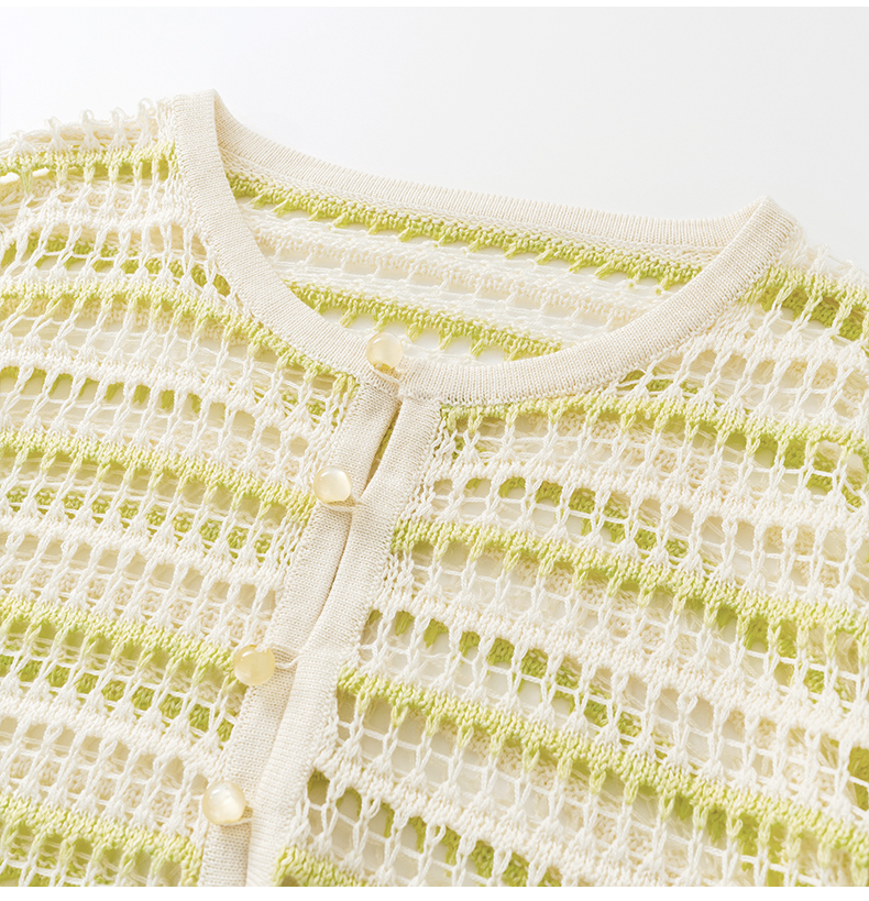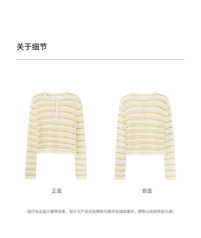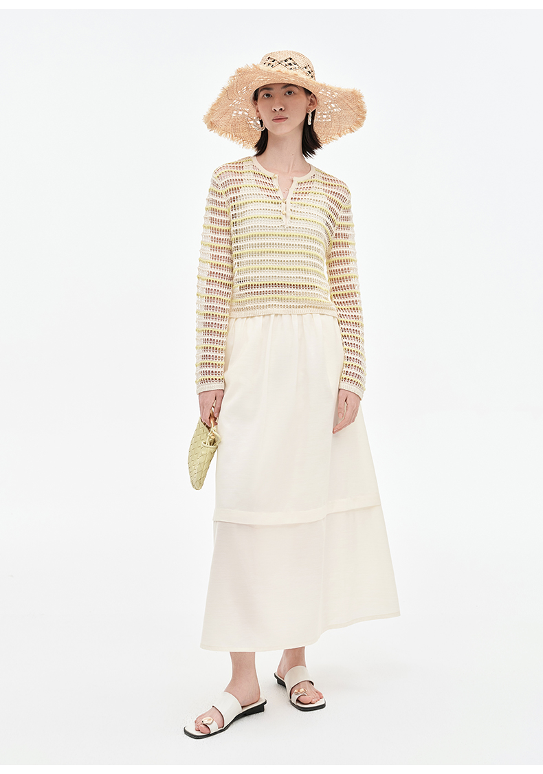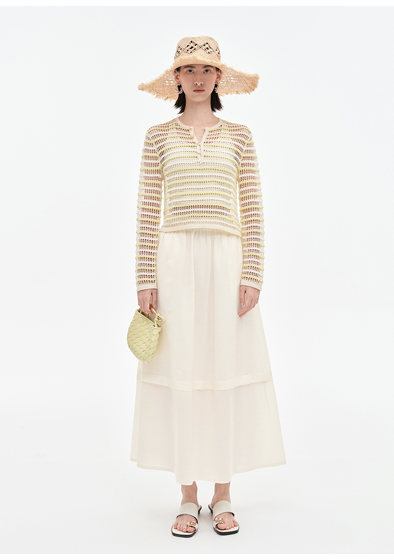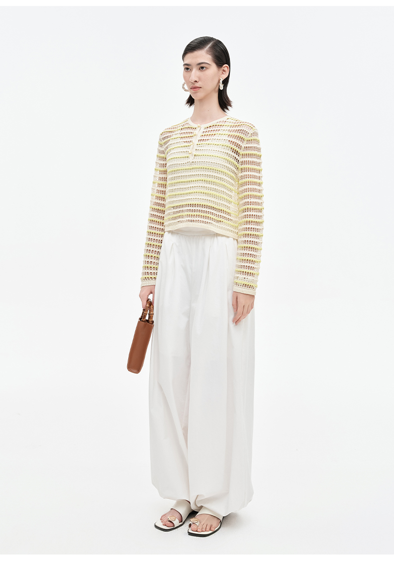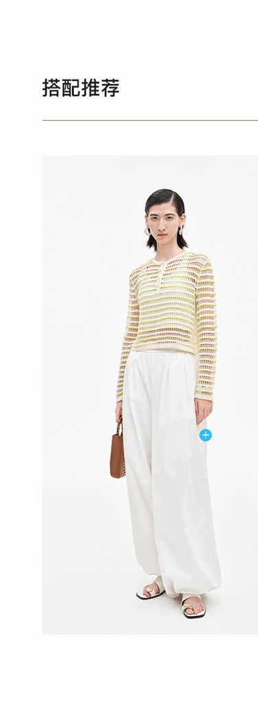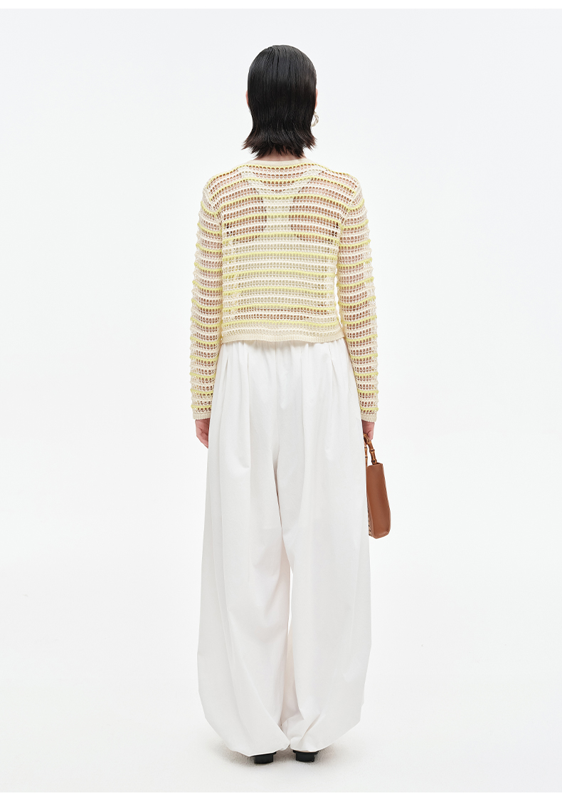 SELFWHO绵羊毛混纺淡黄色镂空针织衫女2025冬季新款宽松透气上衣
