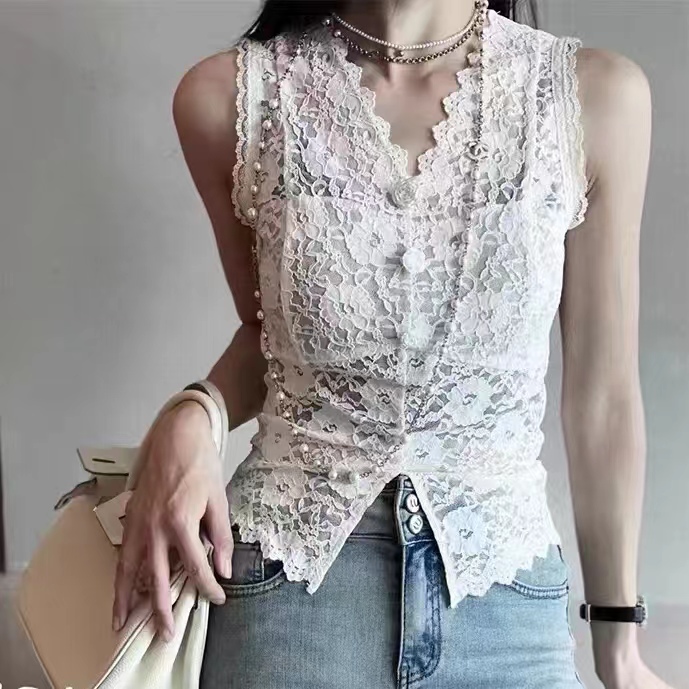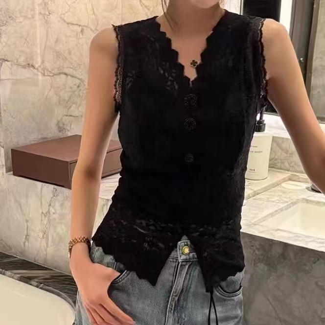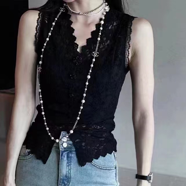 【山茶花新款新升级】全身定位剪裁内带网纱蕾丝气质背心女MT240032