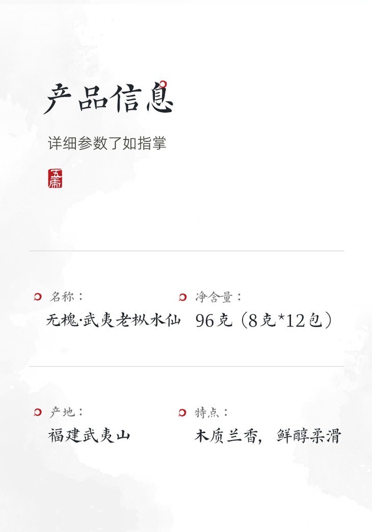 品牌:五虎系列:VIP-老枞水仙乌龙茶干茶形状:细条产地:中国大陆省份:福建省城市:南平市口味:浓香味包装种类:盒装是否为有机食品:否包装方式:散茶是否进口:国产