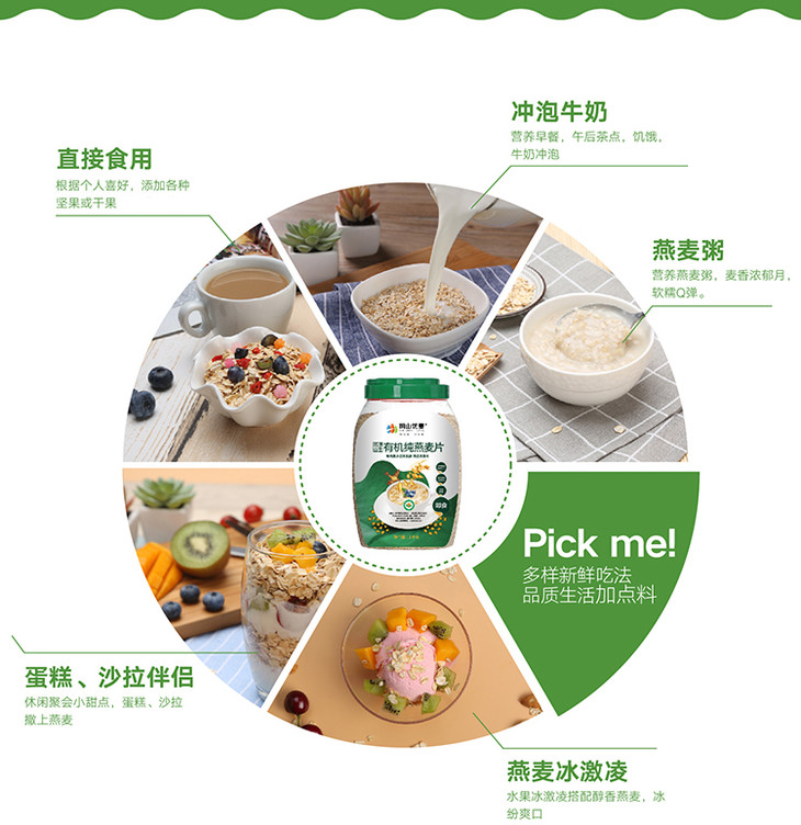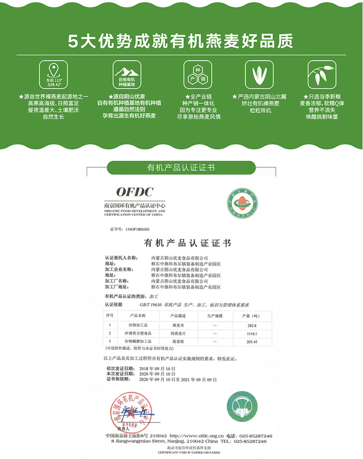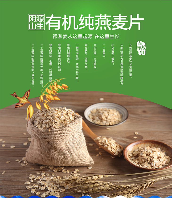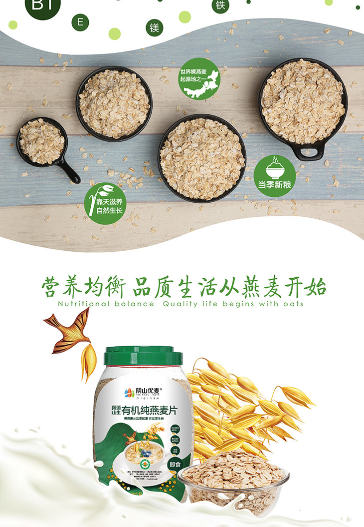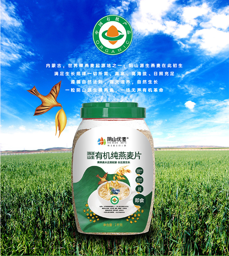 1000g阴山优麦源生有机纯燕麦片(桶)