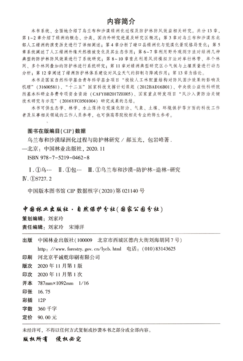 乌兰布和沙漠绿洲化过程与防护林研究 郝玉光 包岩峰 0462 中国林业出版社