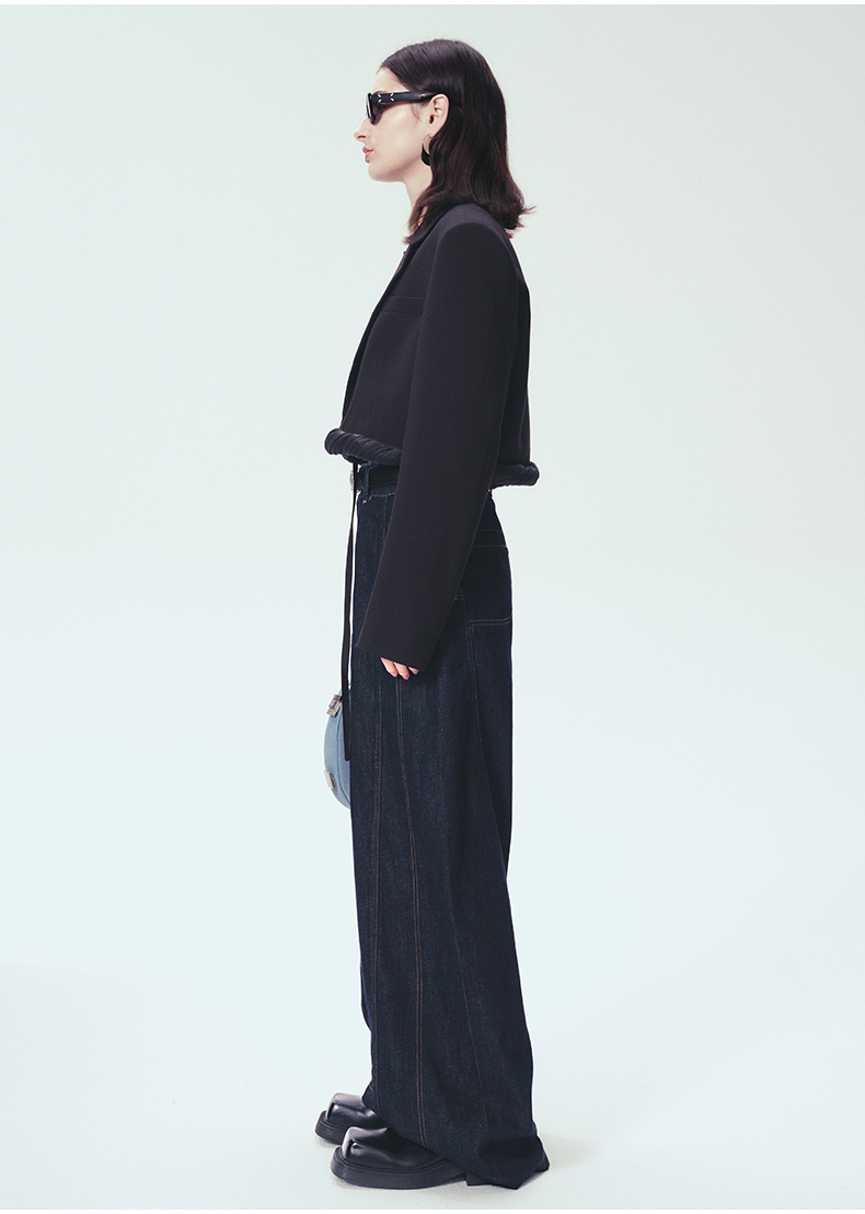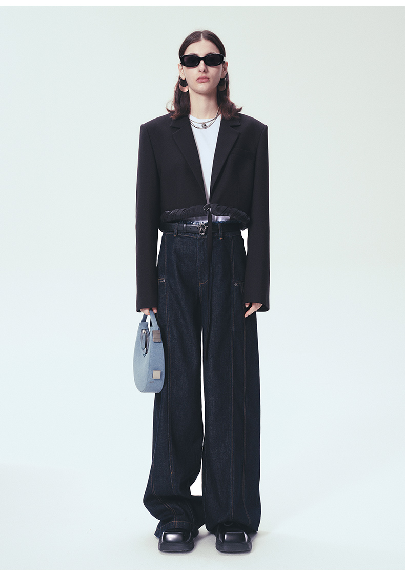 Self Who黑色卷边短西装外套女2024春季新款小众设计感小个子上衣
