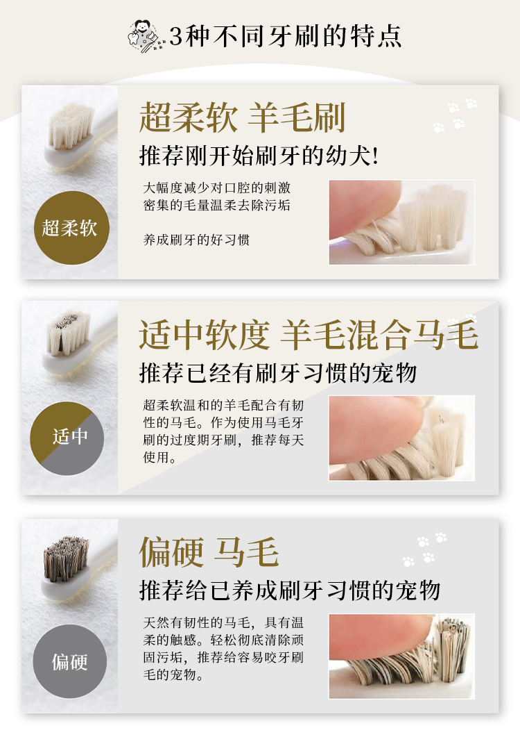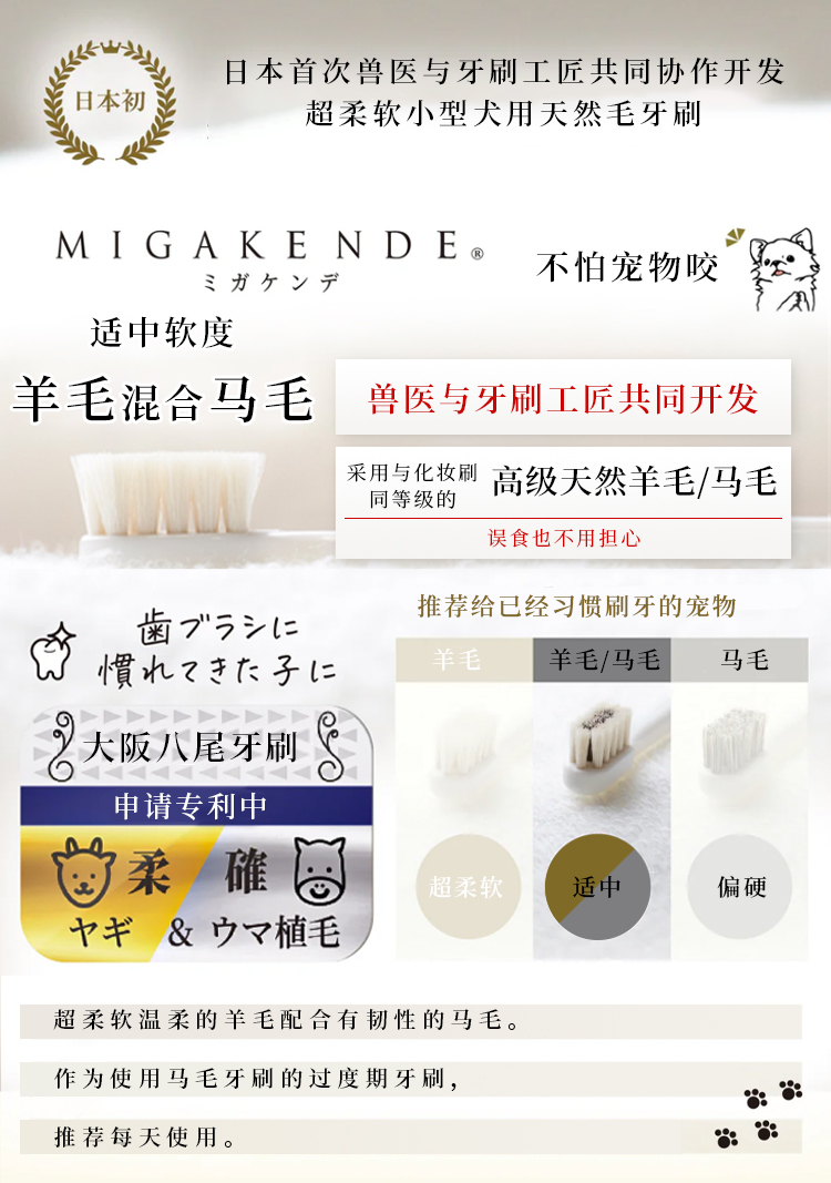 Migakende 猫咪小型犬牙刷 天然羊毛/马毛混合毛