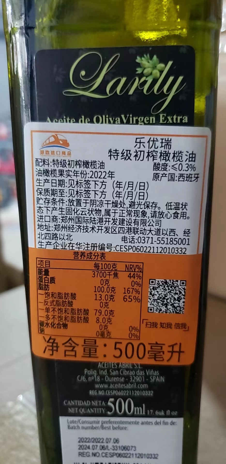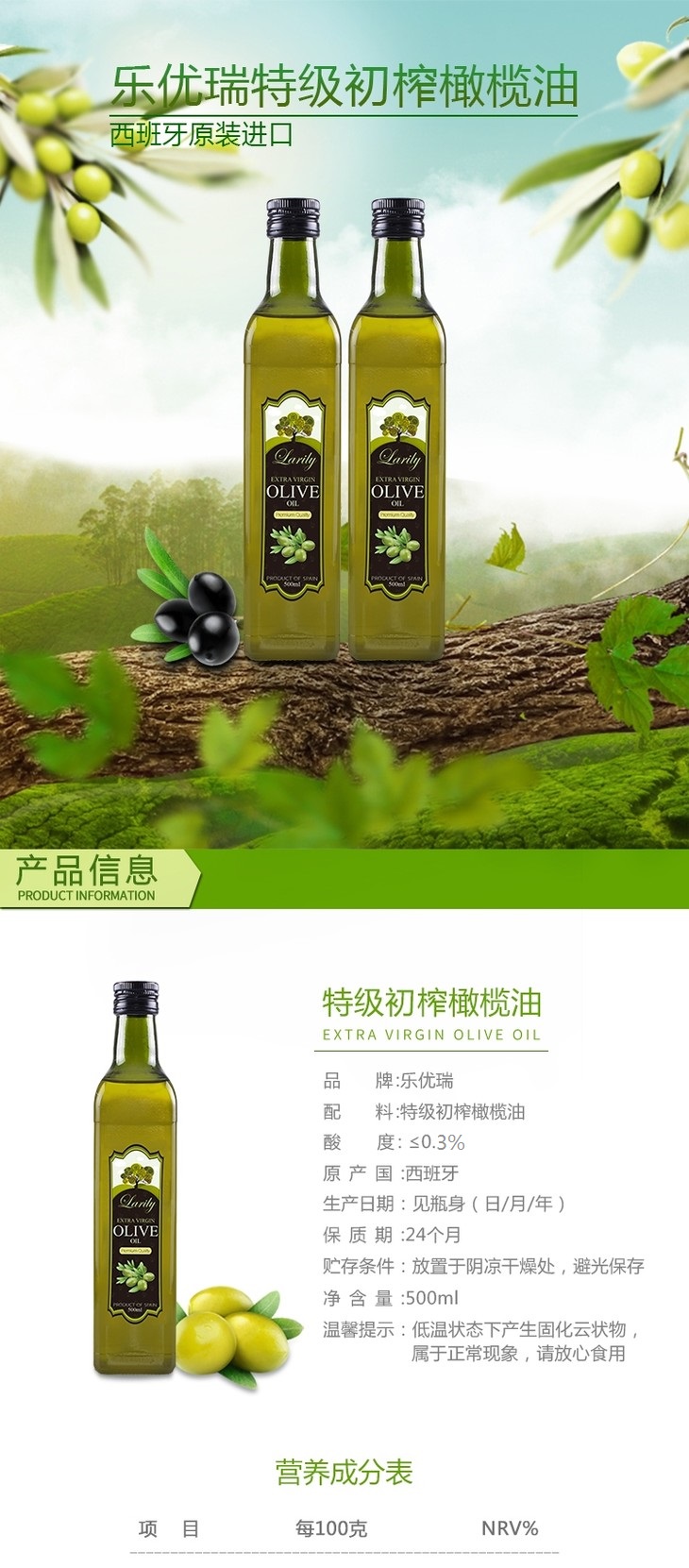 严选 | 西班牙橄榄油 原装进口 乐优瑞特级初榨橄榄油 玻璃瓶装 500ml/瓶 酸度小于0.3%