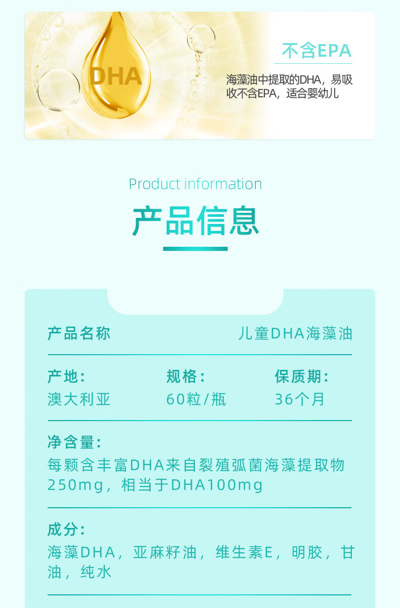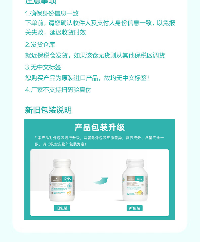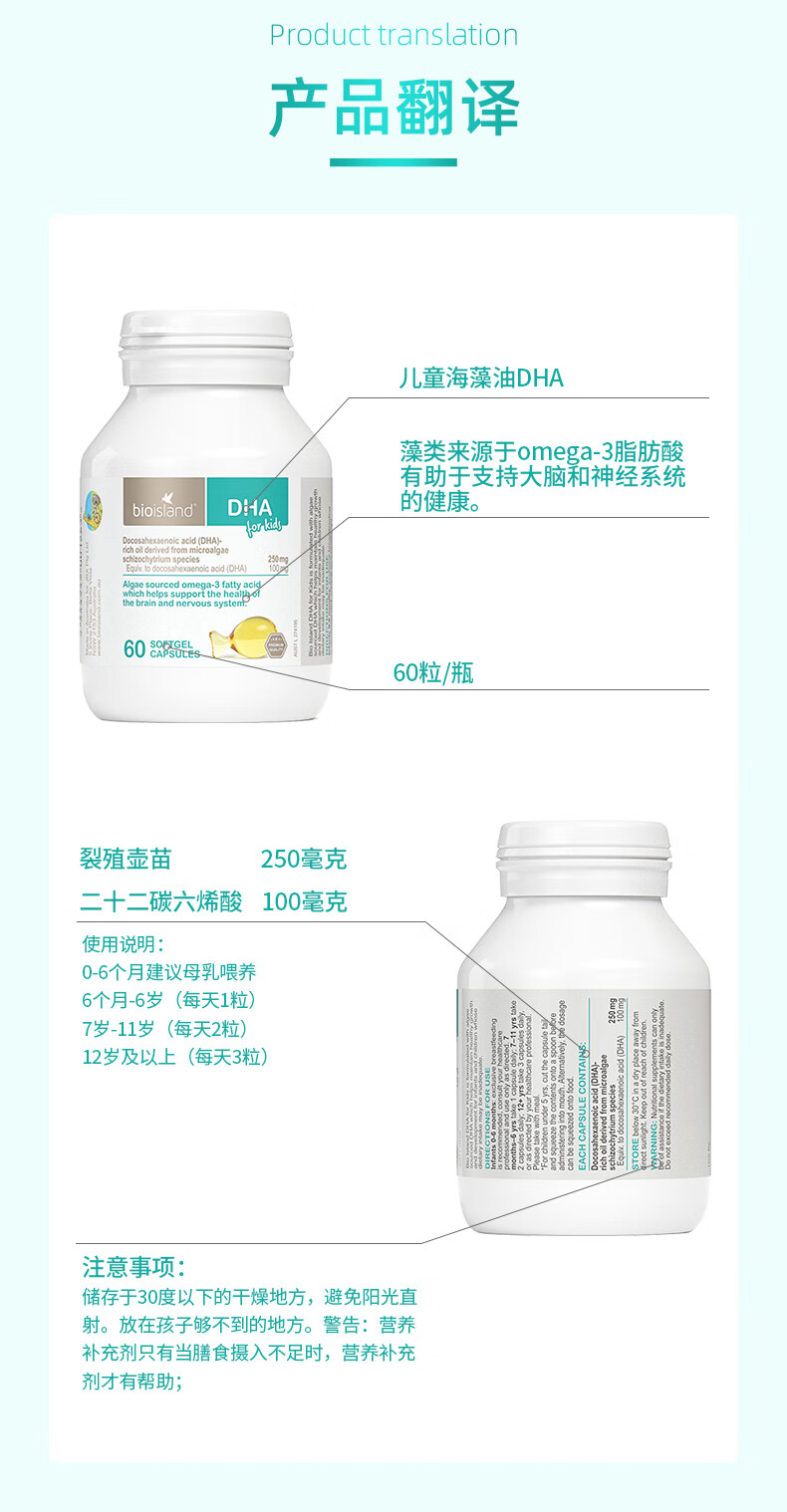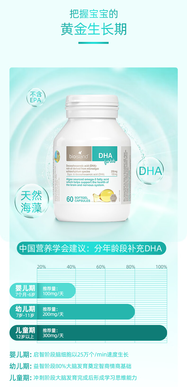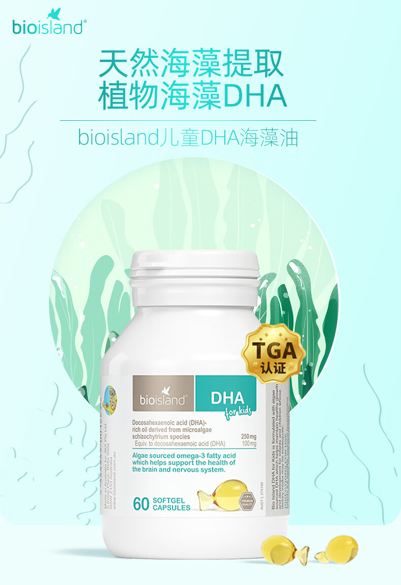 【保税仓】BioIsland/佰澳朗德婴幼儿DHA海藻油胶囊60粒/瓶