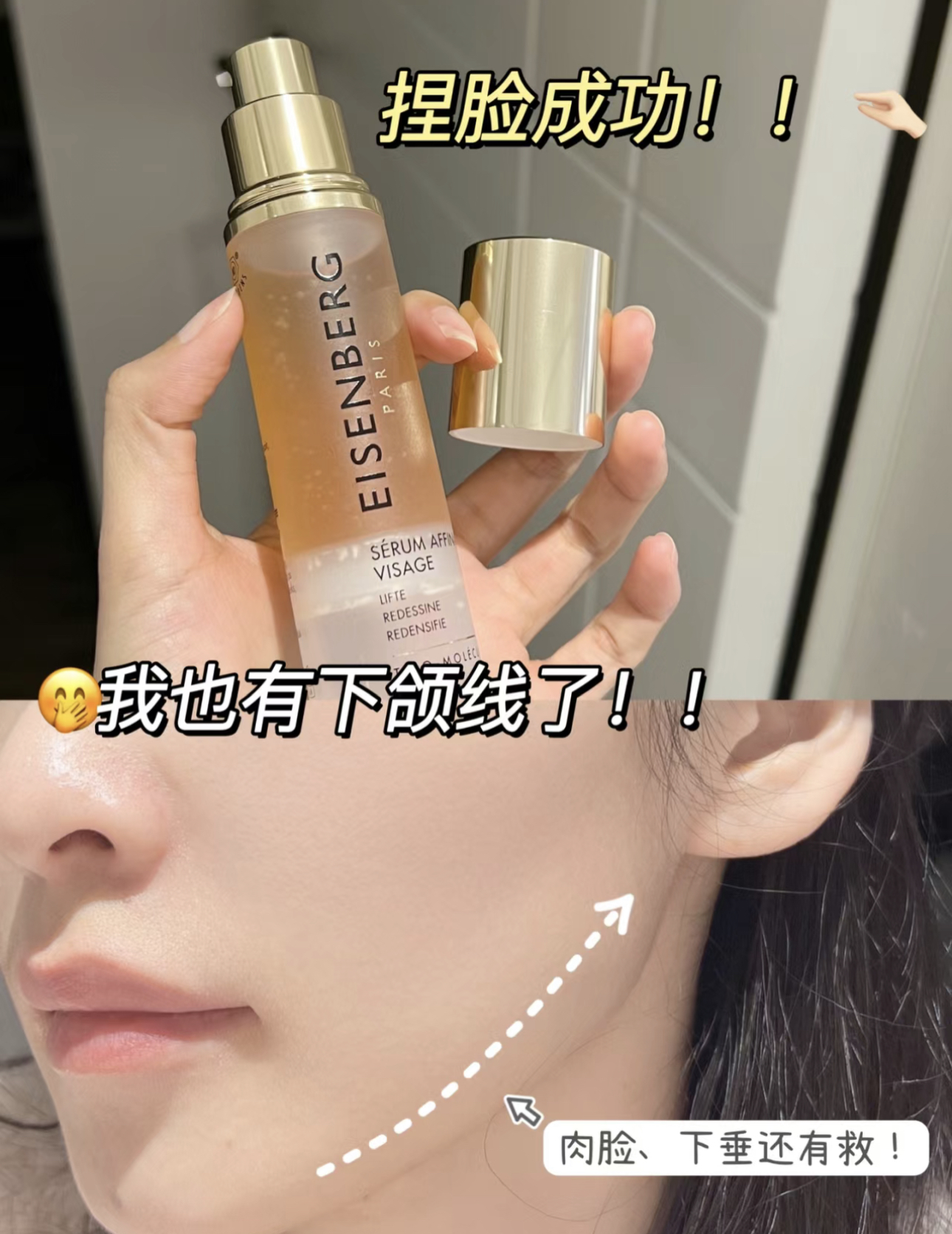 然后用v脸精华涂下半脸(建议只涂在双下巴和下颚线)