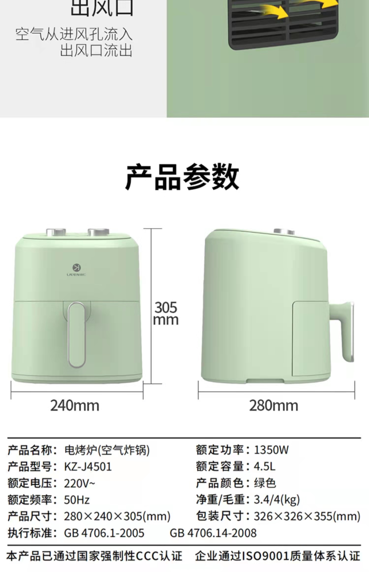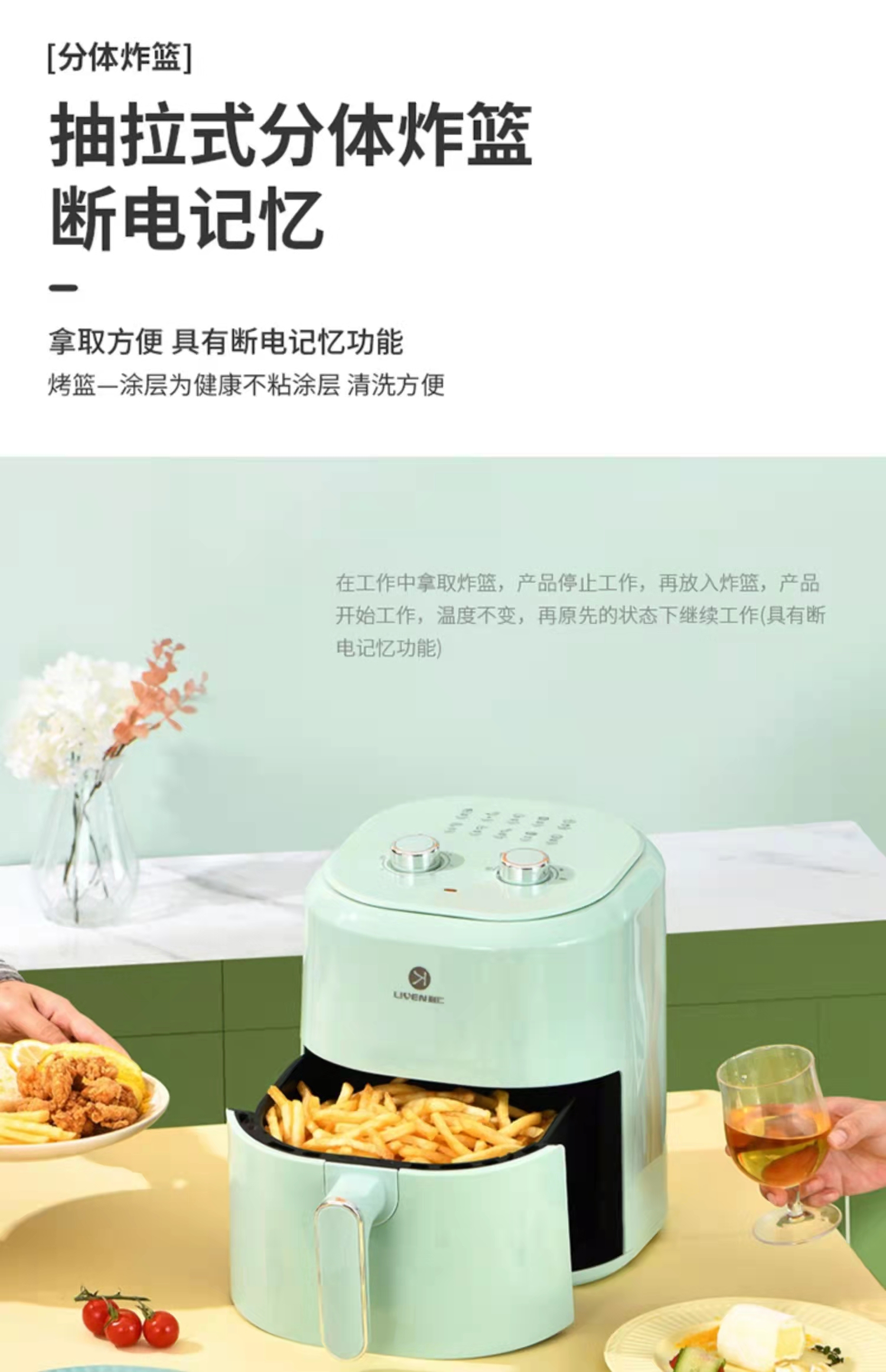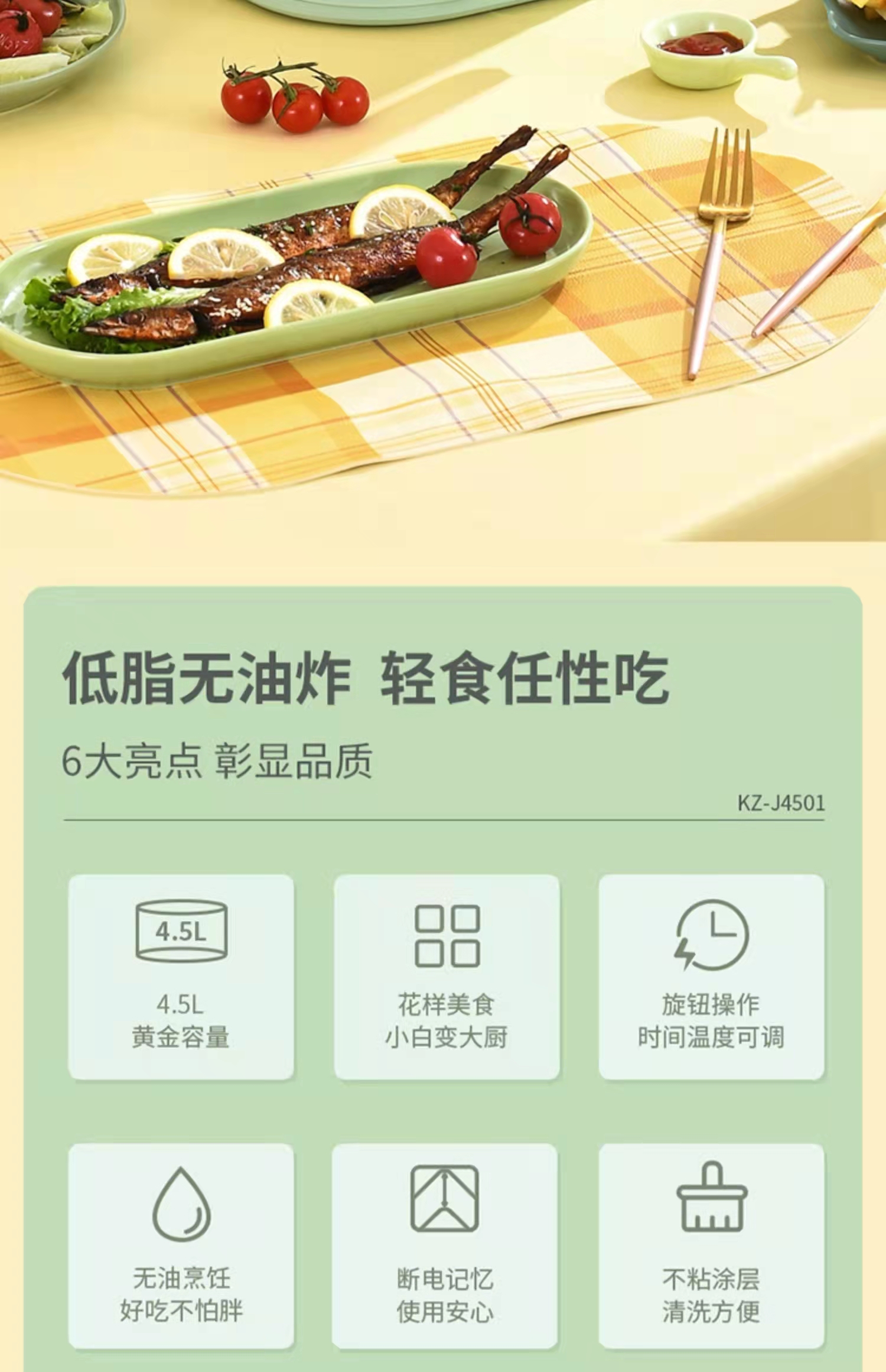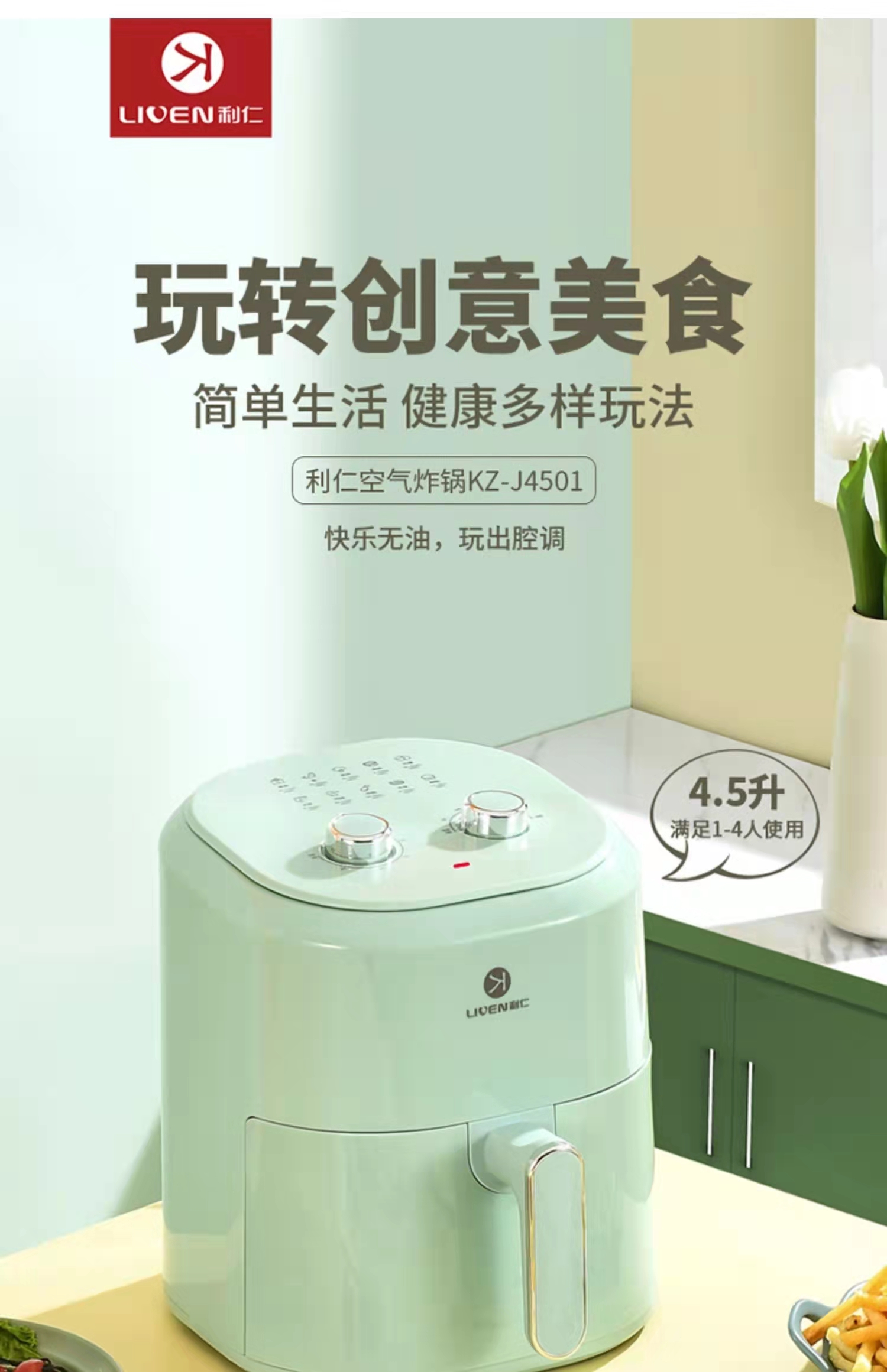 利仁 4.5L大容量空气炸锅KZ-J4501薯条烘培
