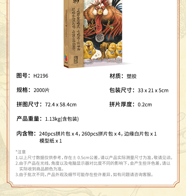 【折扣商品 不退不换】2000片 平面塑料拼图 H2196 大渣熊-鸡中之霸