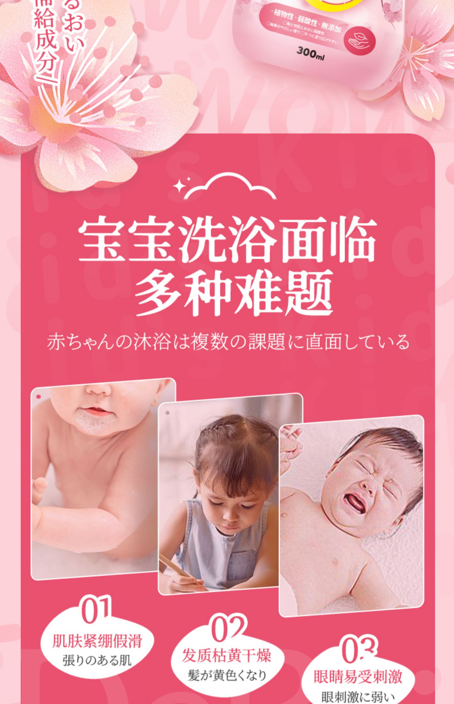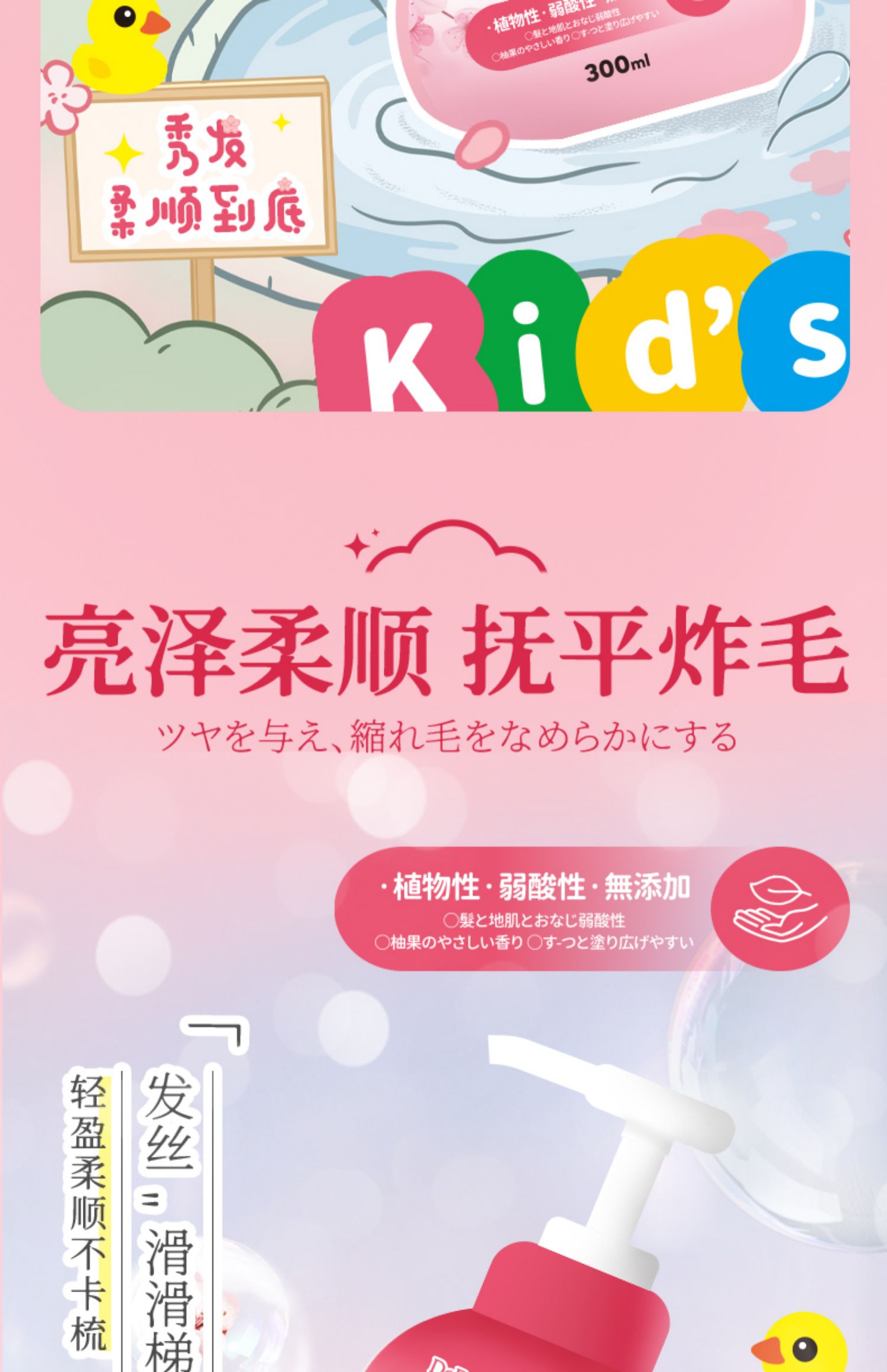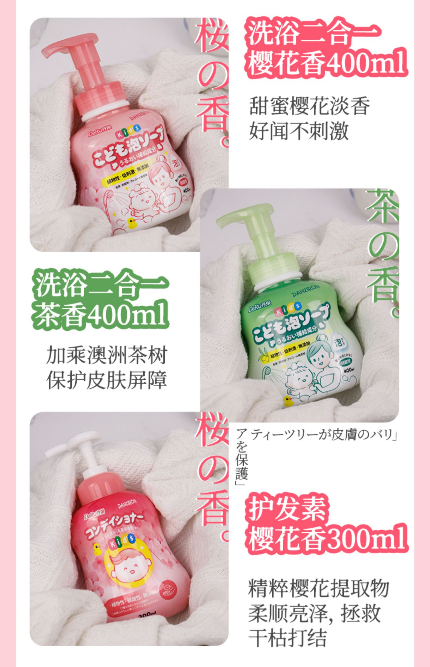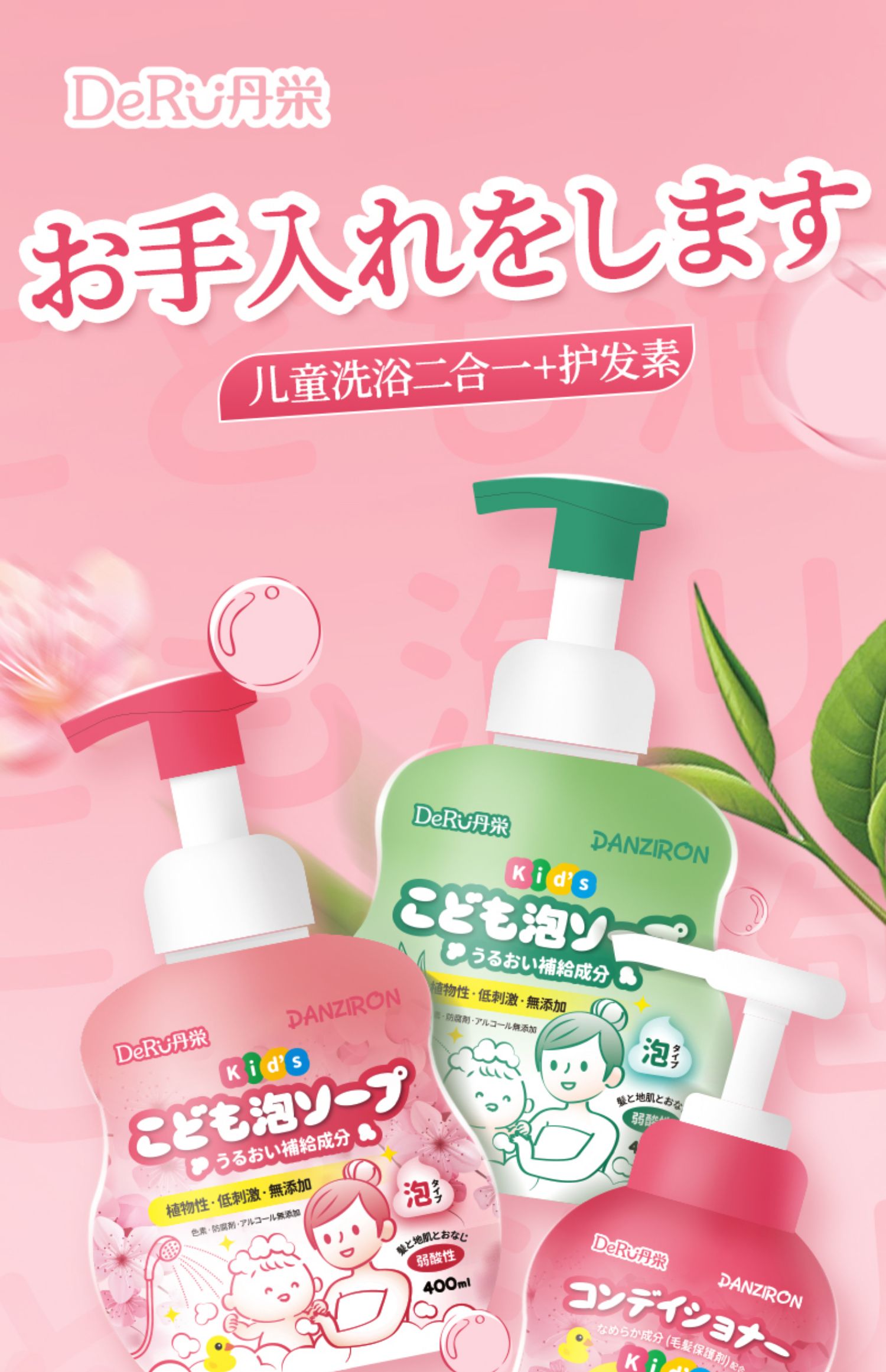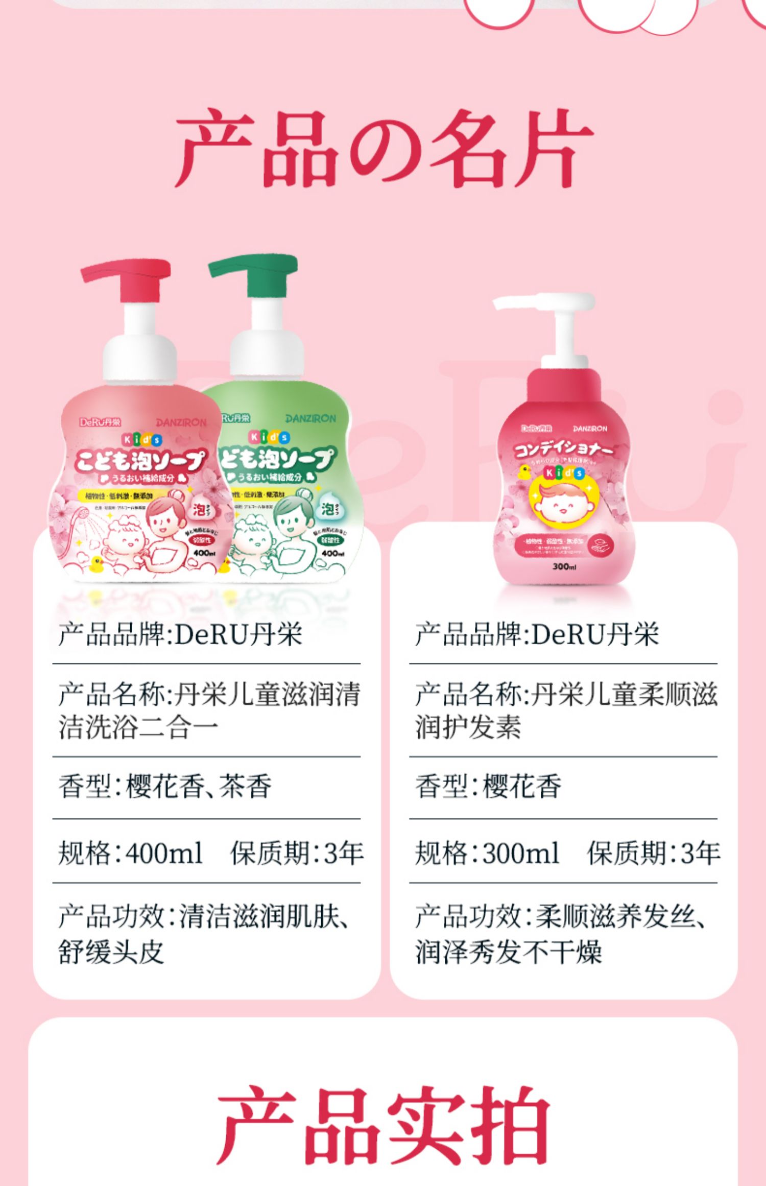【保税仓】DeRU丹栄儿童柔顺滋润护发素樱花香型 滋润清洁洗浴二合一樱花香