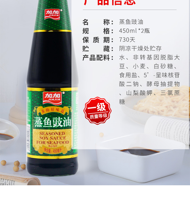加加 蒸鱼豉油 清蒸海鲜凉拌酿造酱油调味品 450ML*2瓶