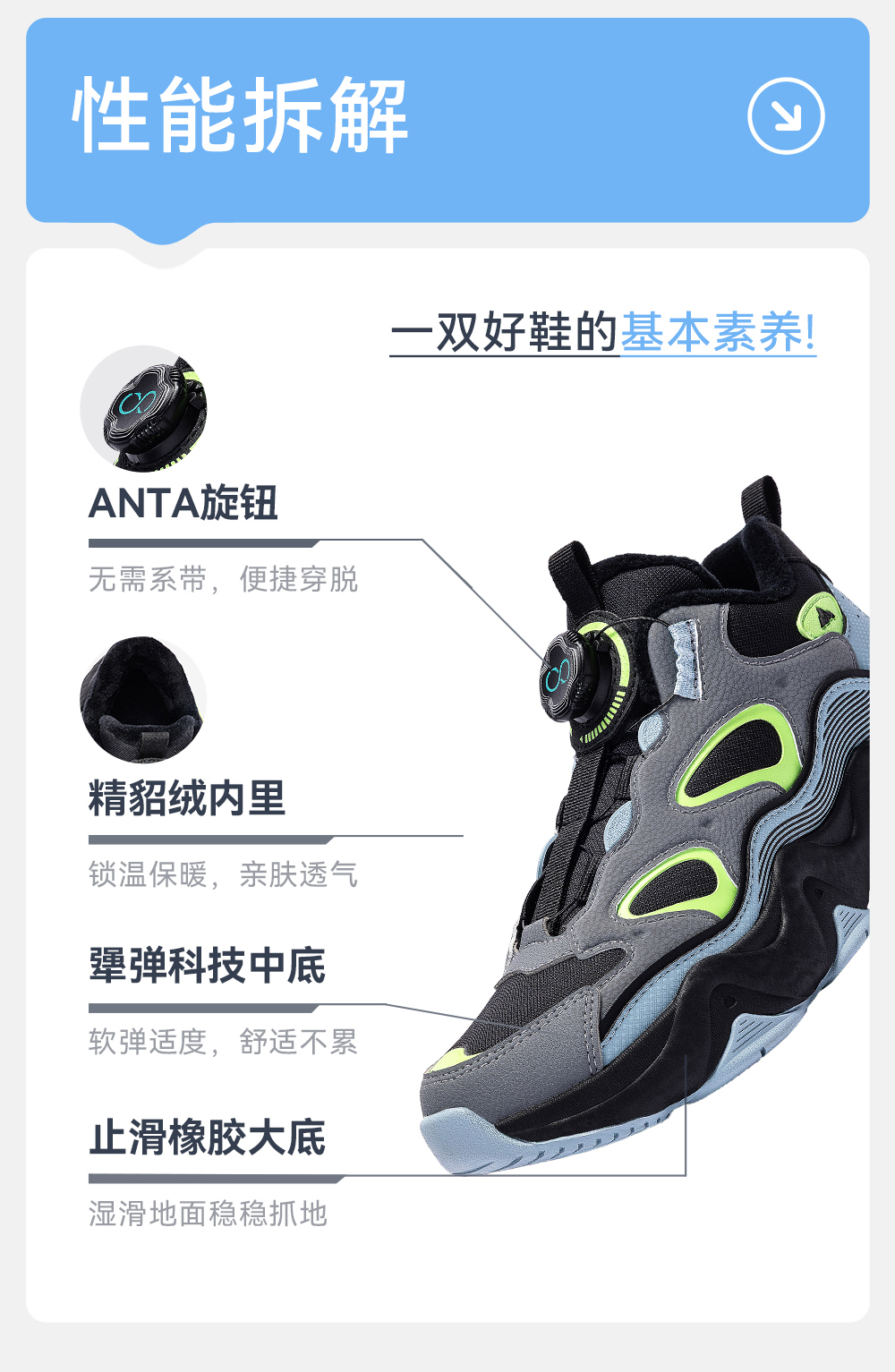 安踏儿童男大童棉鞋2025冬季新款舒适保暖中大童休闲二棉墩墩棉鞋312546912