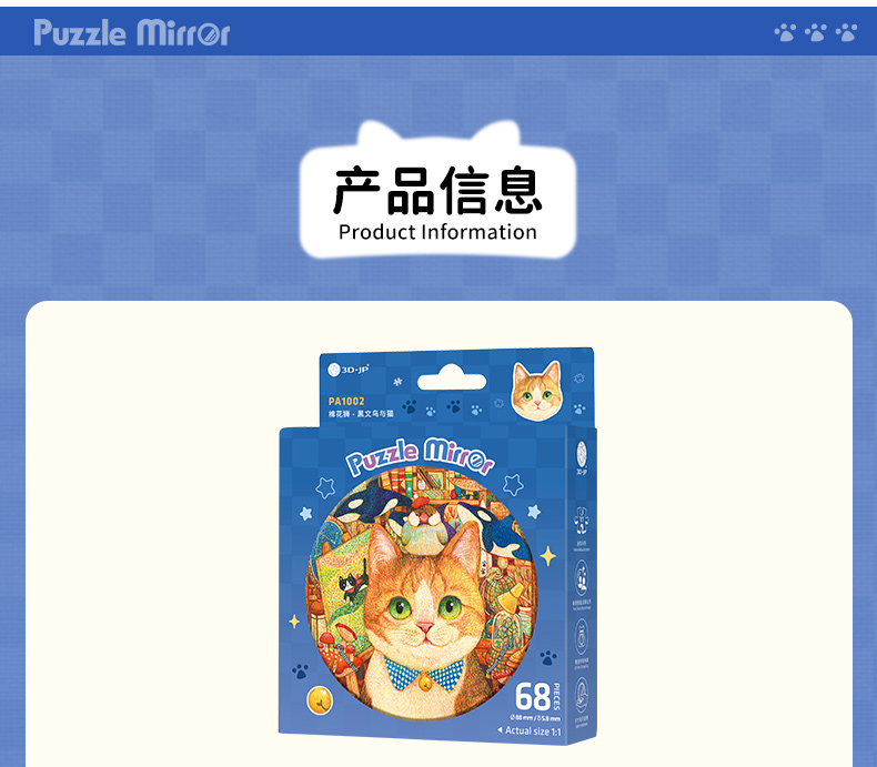 68片 随身镜拼图 PA1002 棉花狮-黑文鸟与猫