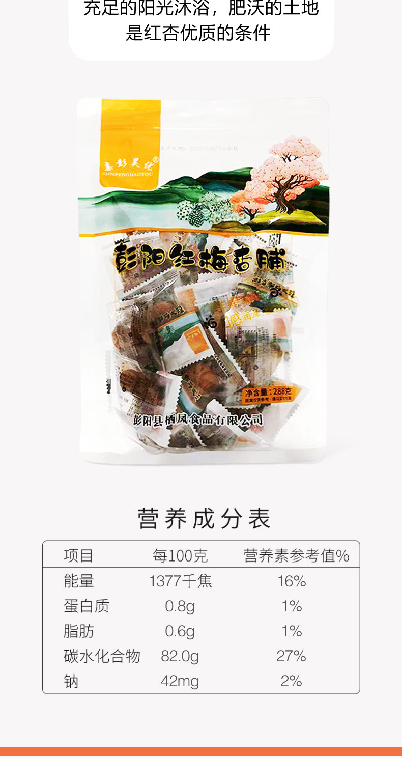 亲彭昊优红梅杏脯288g(KBJ)(仅限福建省内配送,满400元包邮)
