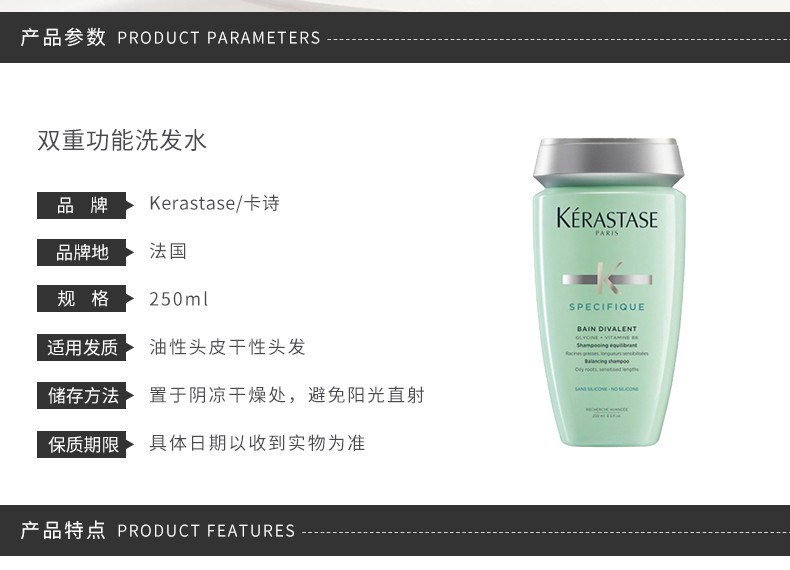 卡诗(KERASTASE)双重功能头皮控油平衡洗发水 心选到家