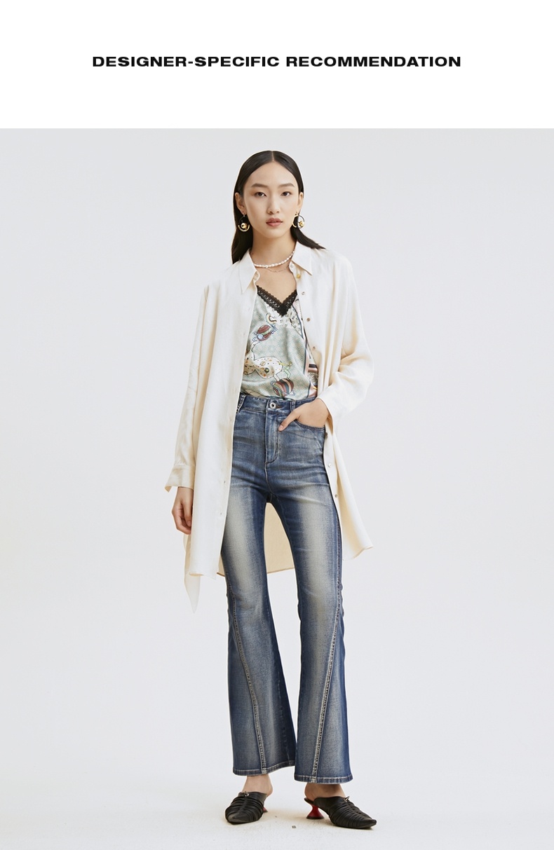 谜底牛仔裤九分裤2025冬季新品复古纹理原创印花加厚女254MJ1504