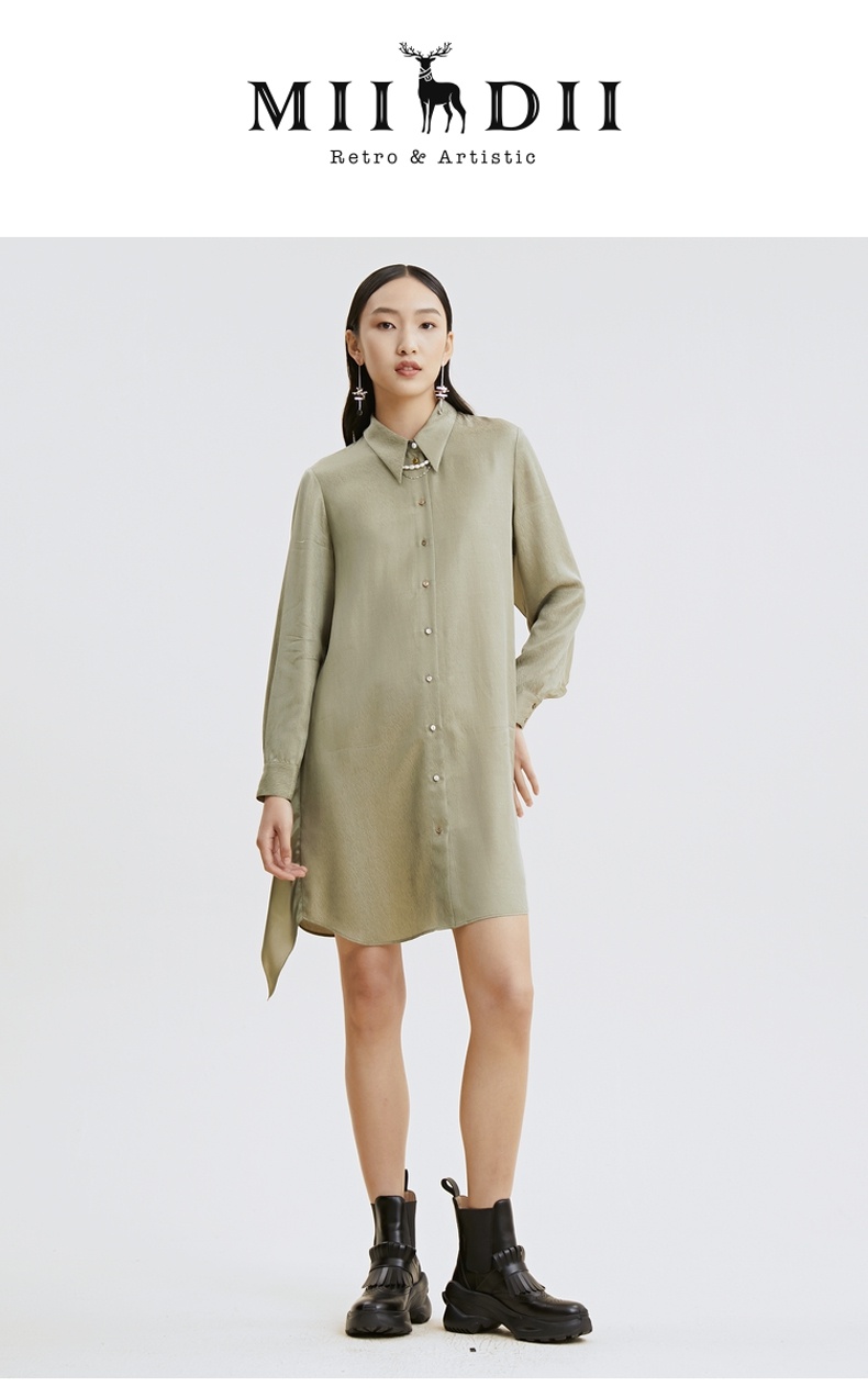 谜底衬衫式连衣裙2021夏季新款高端系列铜氨天丝裙子213GL1676