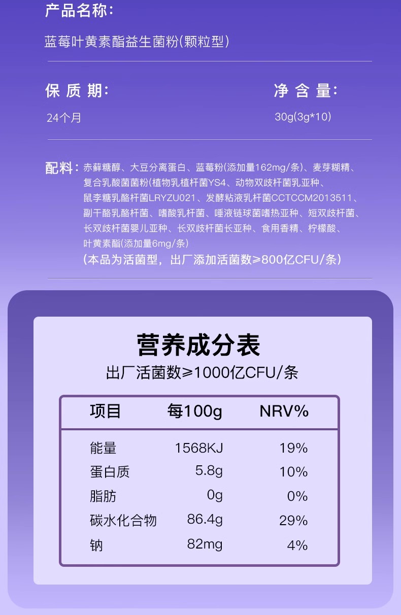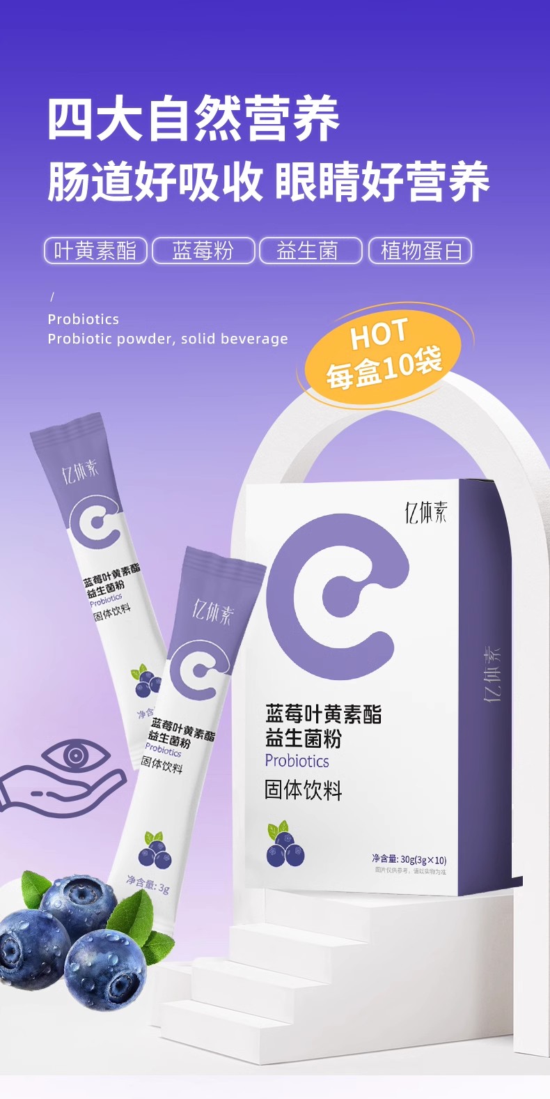 【到手6盒】亿体素蓝莓叶黄素酯益生菌粉 3g*10袋/盒 营养丰富 健康美味