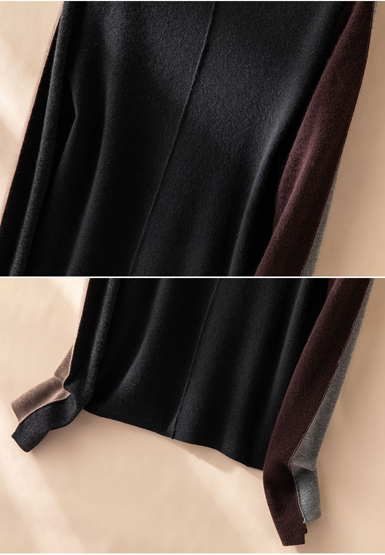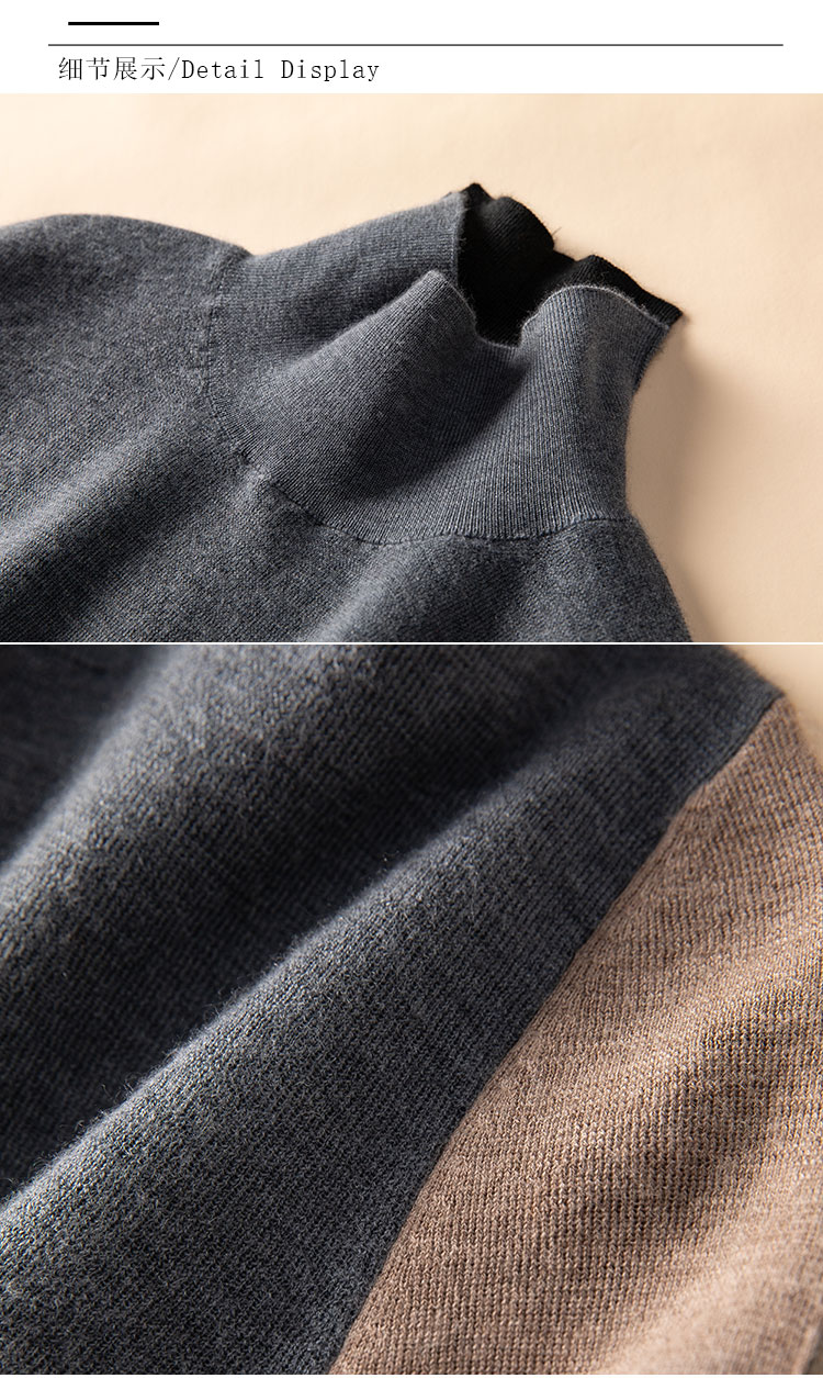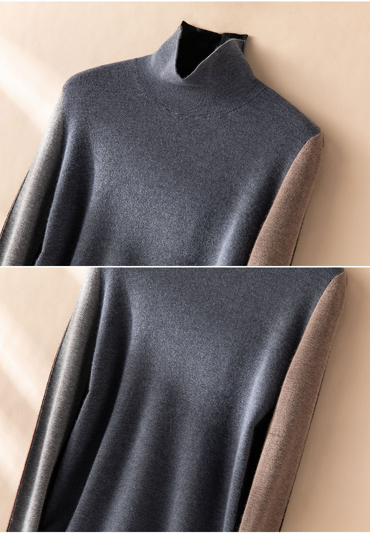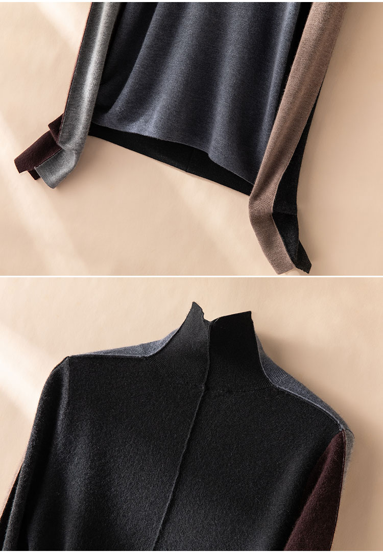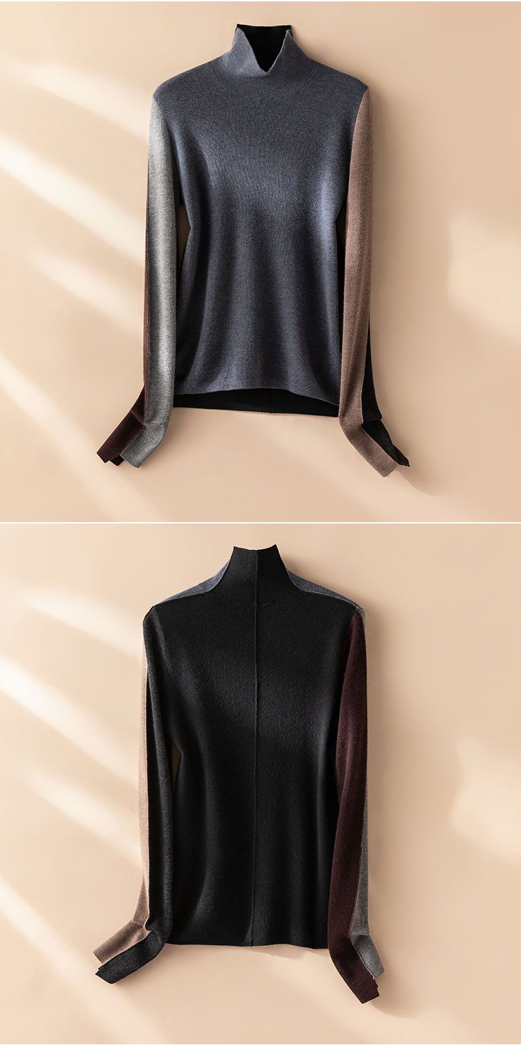 叠穿灵感缪斯~精纺100纯山羊绒衫半高领拼色长袖针织衫CYR250469