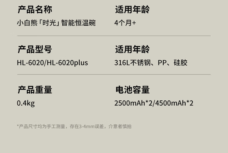 小白熊 儿童恒温碗 智能恒温保温碗标准版HL-6020