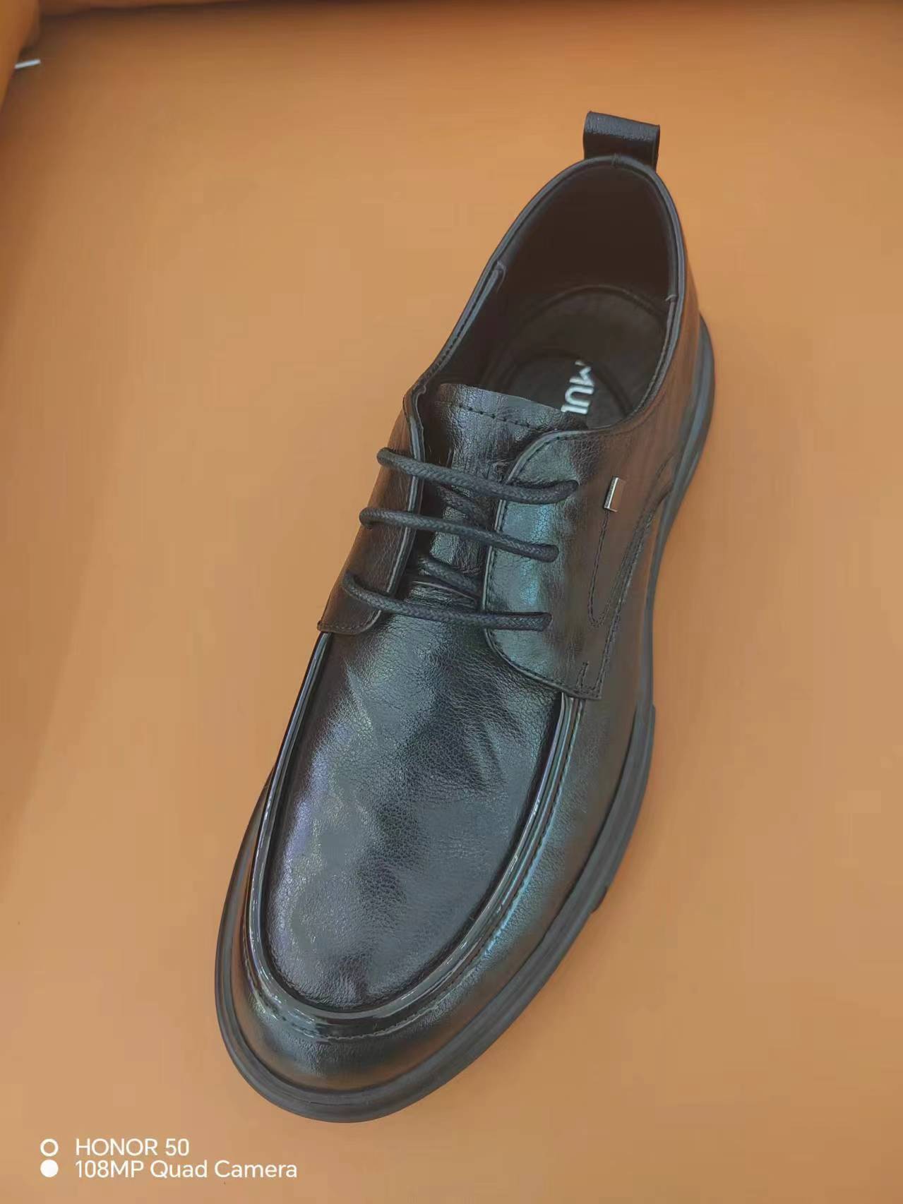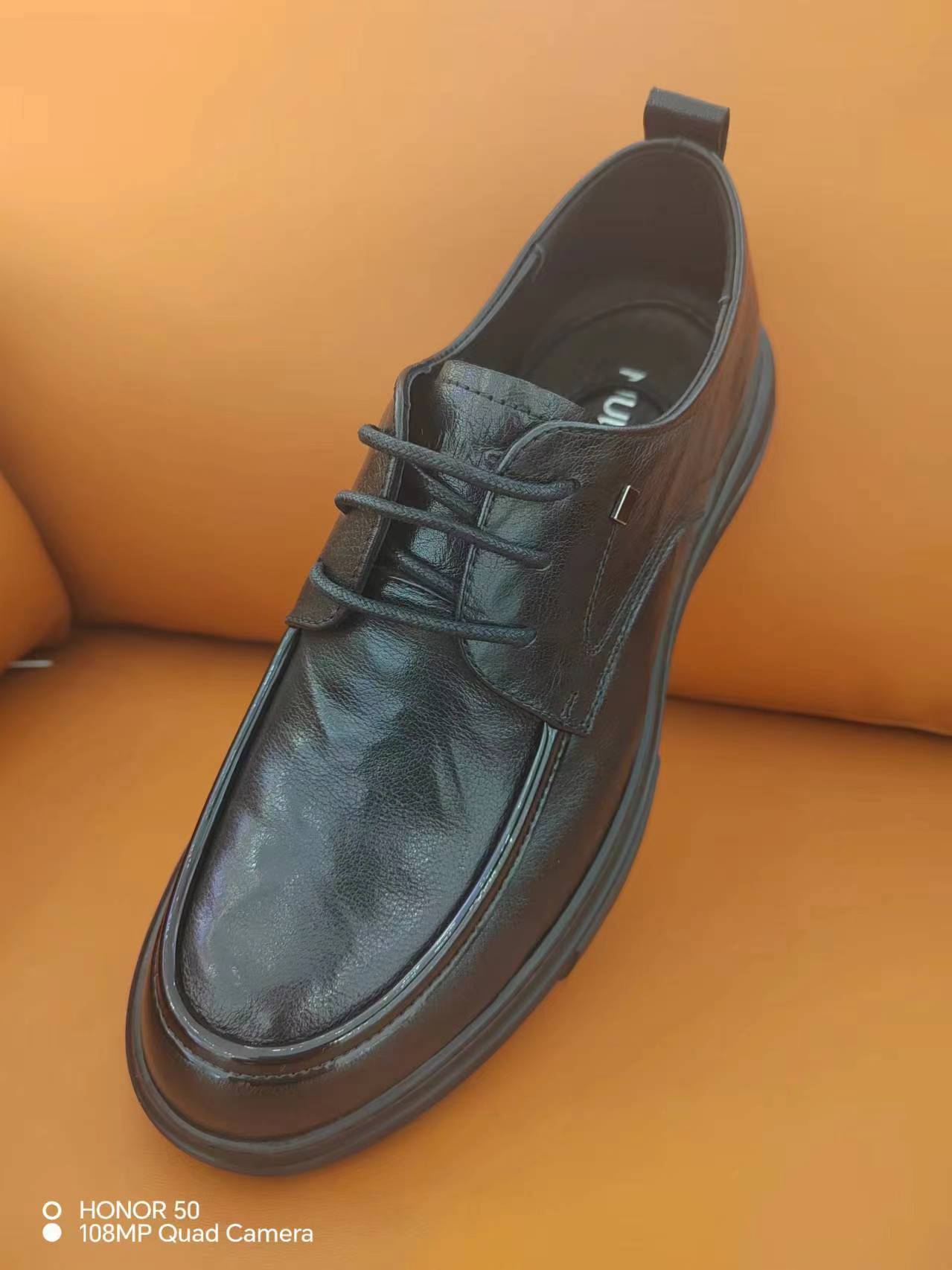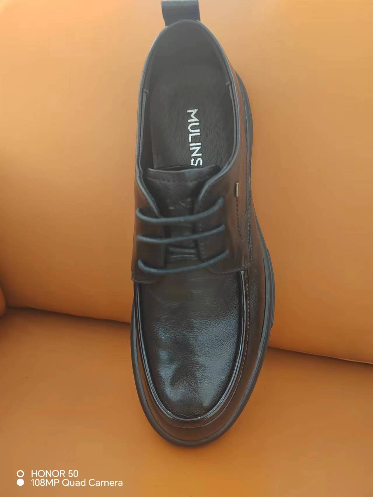 木林森秋季商务自然抓皱休闲厚底圆头系带皮鞋
