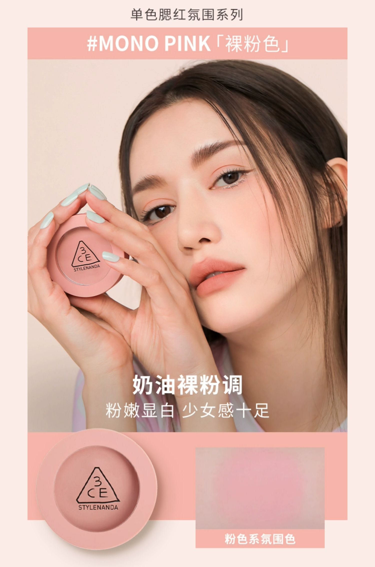 【保税仓】3CE三熹玉单色腮红裸米色/温婉粉色/蜜桃橘/CITYMAUVE 5.5g