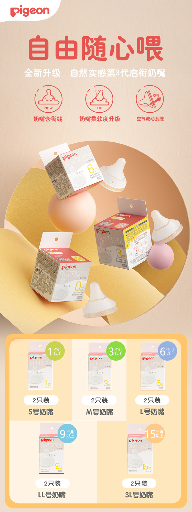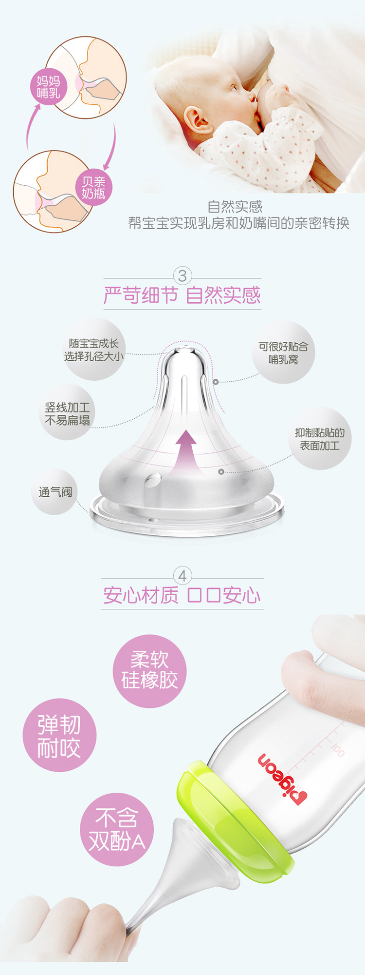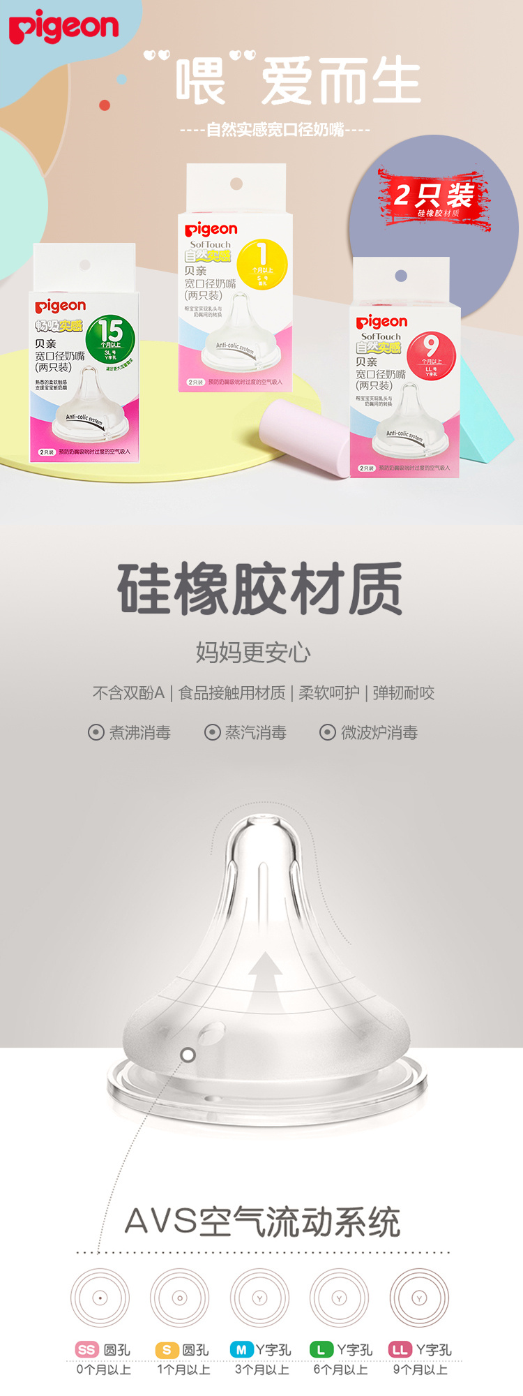 贝亲自然实感Ⅲ宽口径启衔奶嘴BA129-139