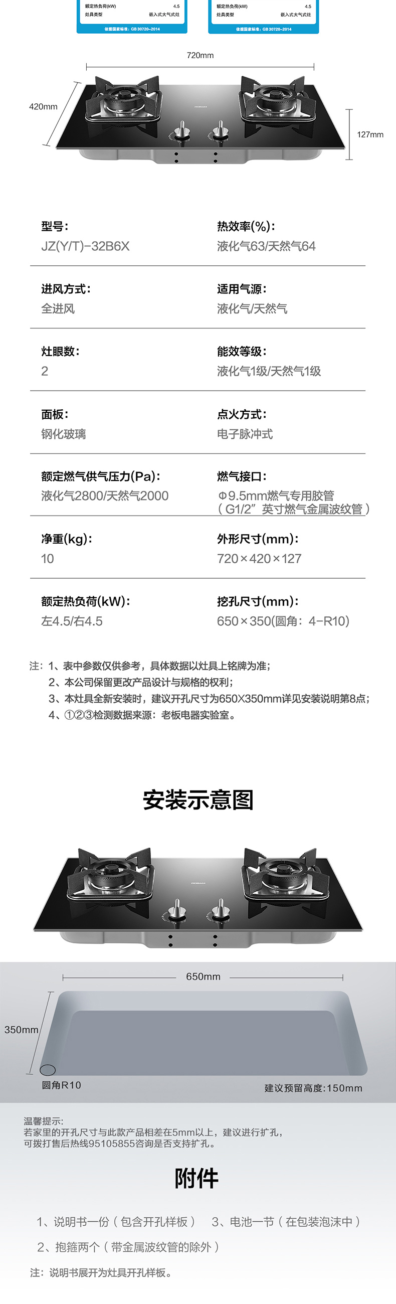 老板32B6X燃气灶煤气灶双灶台式嵌入式家用天然气液化官方旗舰店