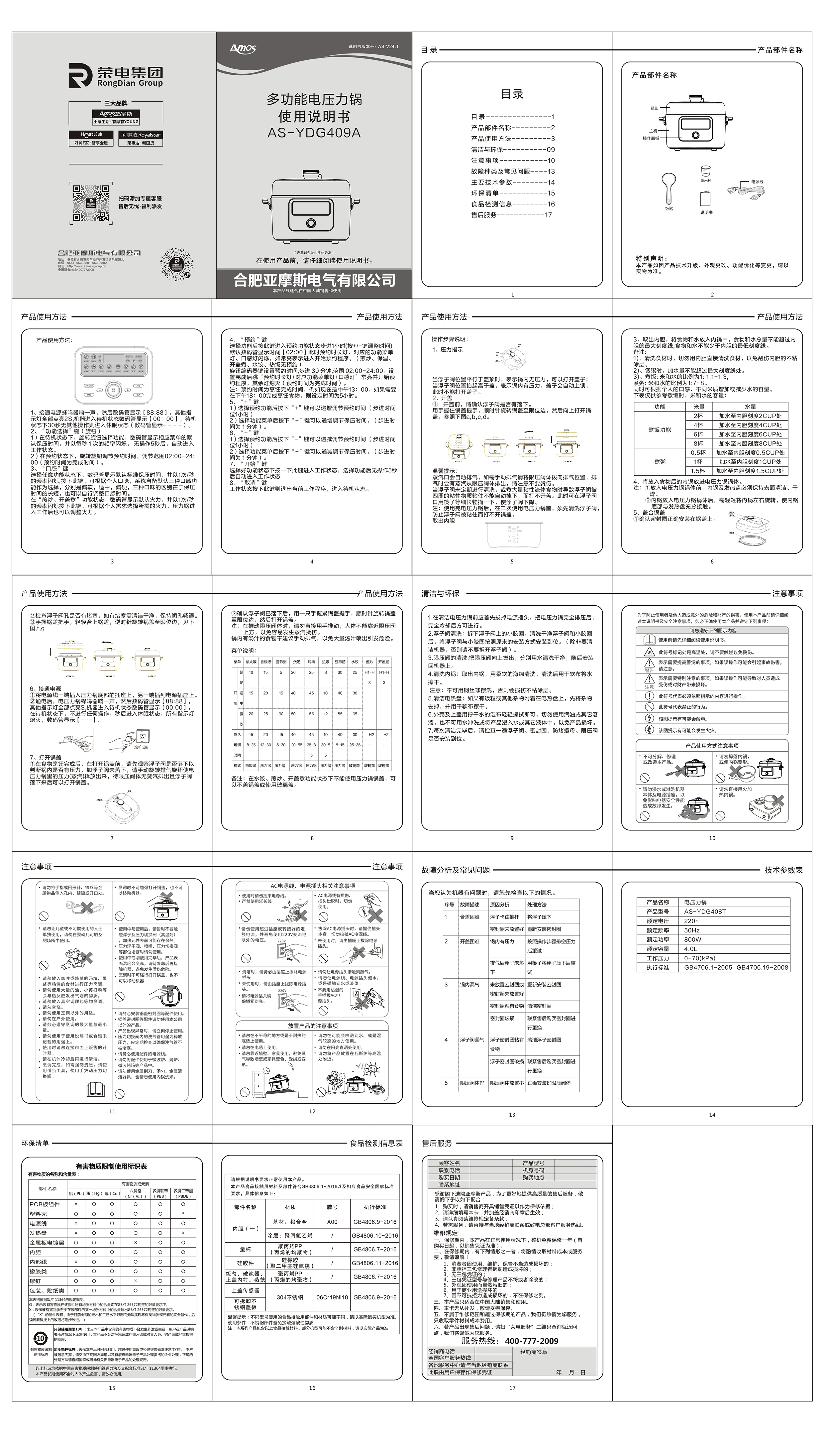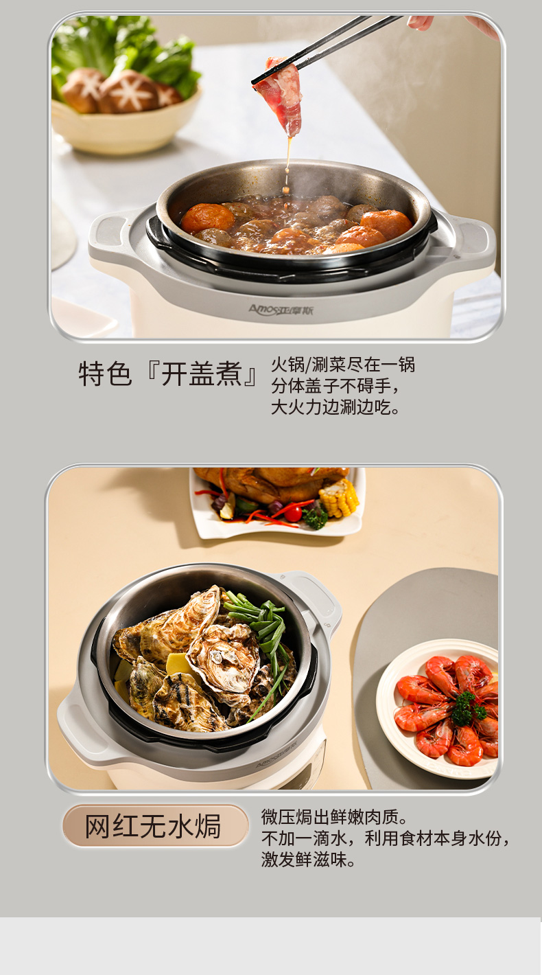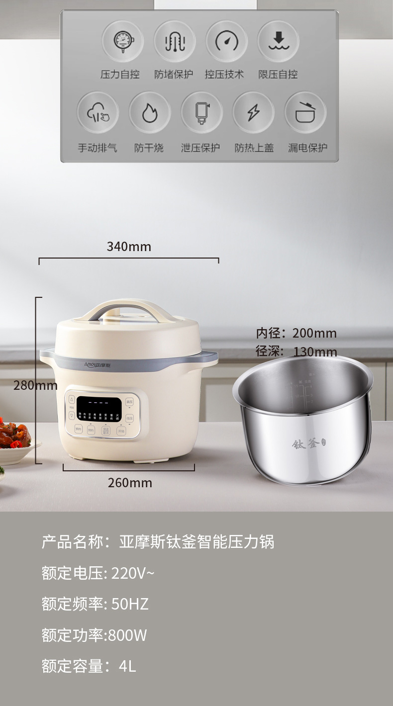 【600积分+689】02CQYX亚摩斯 钛电压力锅AS-YDG408T 1个 智能控压(首发送1把刀)