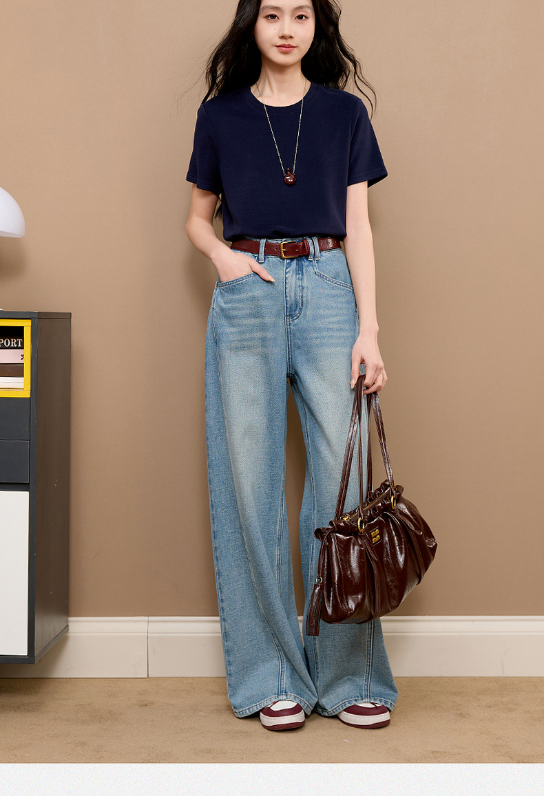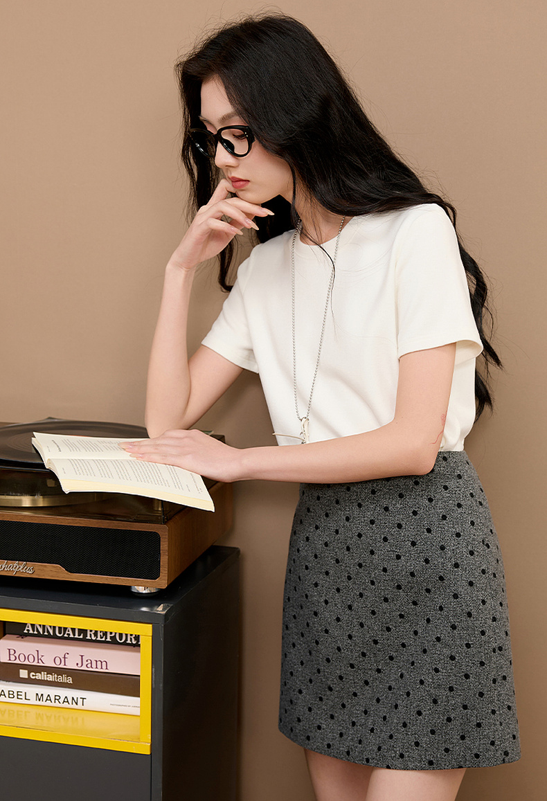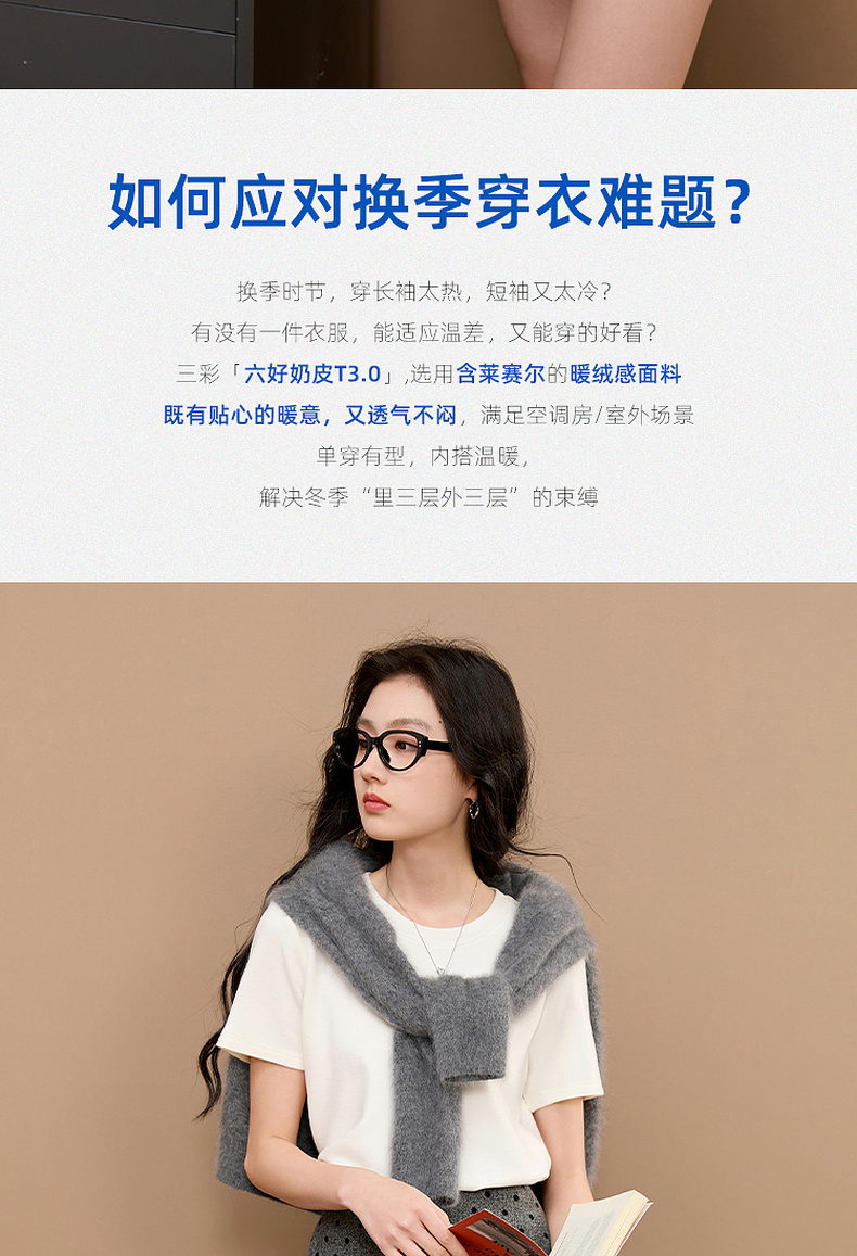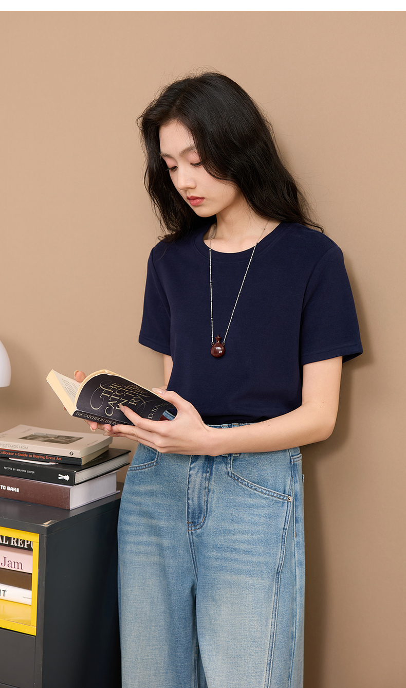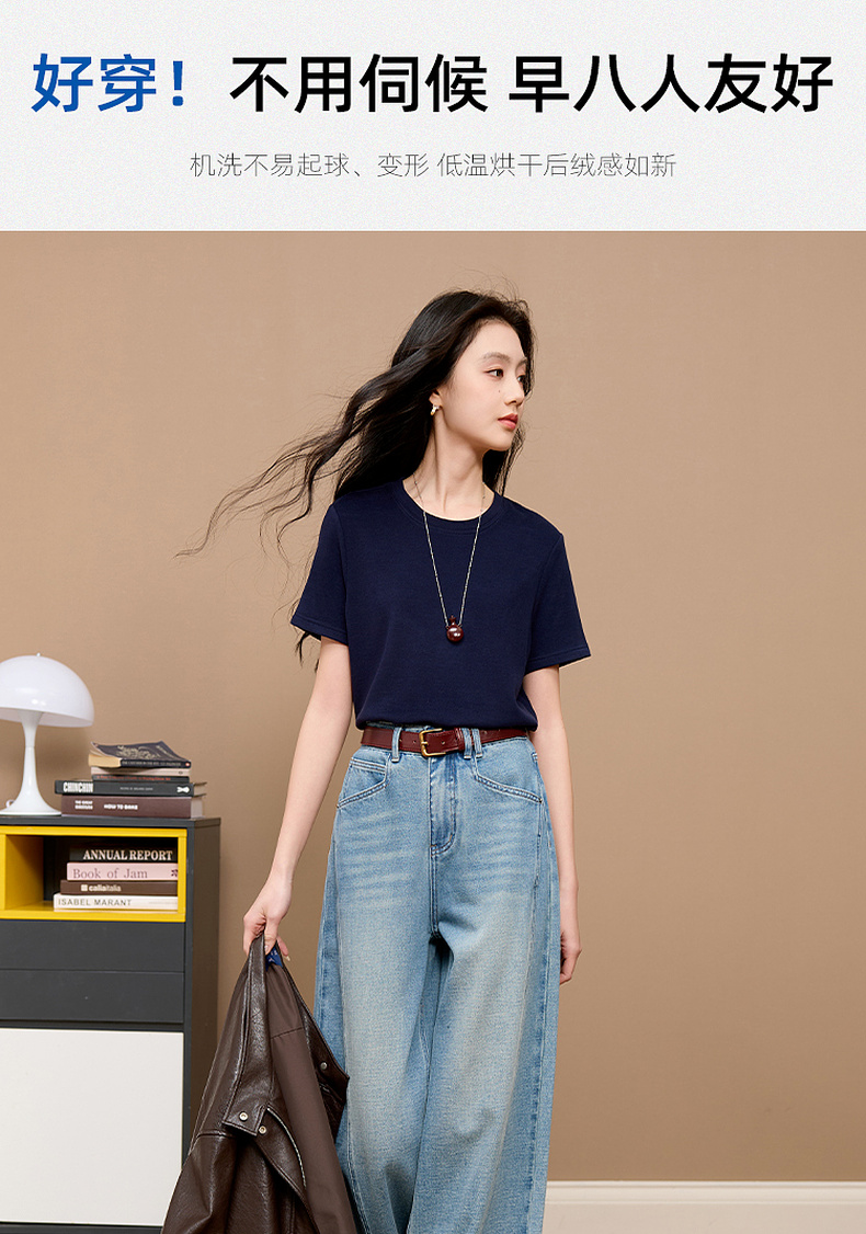 三彩2025冬季新款纯色T恤圆领正肩短袖上衣休闲简约Z
