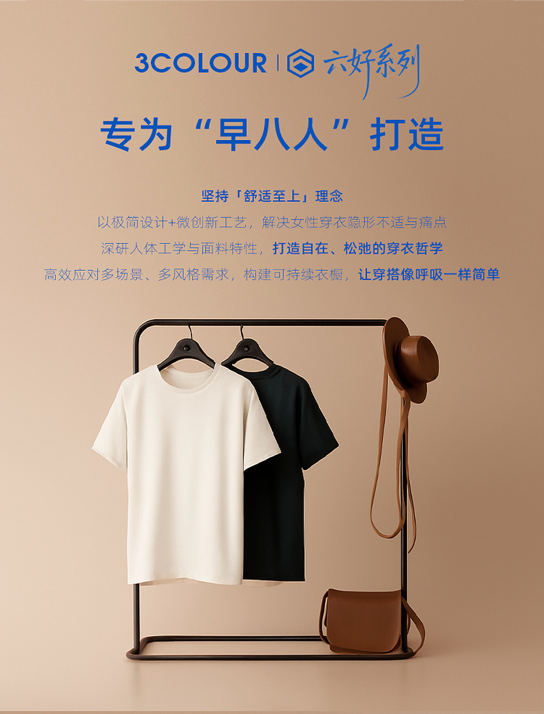 - 3COLOUR,一直致力于探索自我与时尚审美,用穿衣哲学折射生活主张,在流动中探寻恒久。
