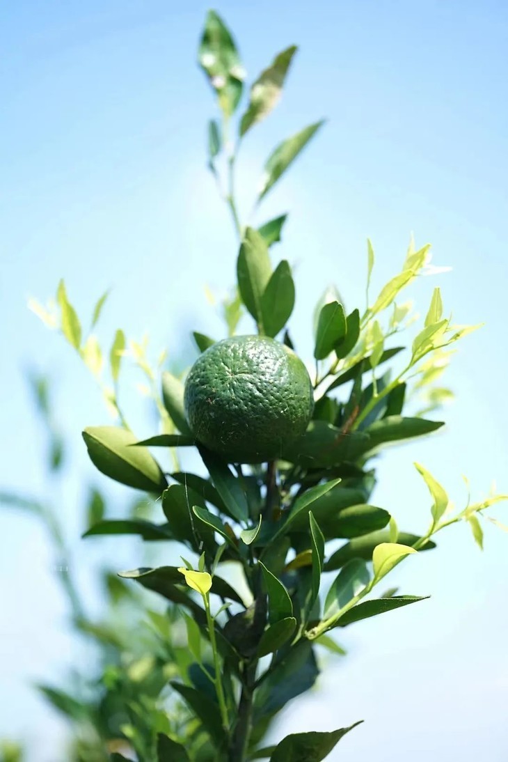 将熟未熟的柑果,积累了一春的养分,蕴含丰富的氨基酸物质,表皮墨绿青翠,油包密集,有着远胜于成熟红柑的清新香气。