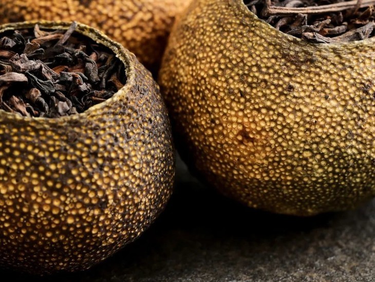 倘若是捏碎后再冲泡,发酵后的普洱茶滋味则会更快散发出来,温厚醇和的茶性恰好中和了柑皮的活泼感,风味更加独特。