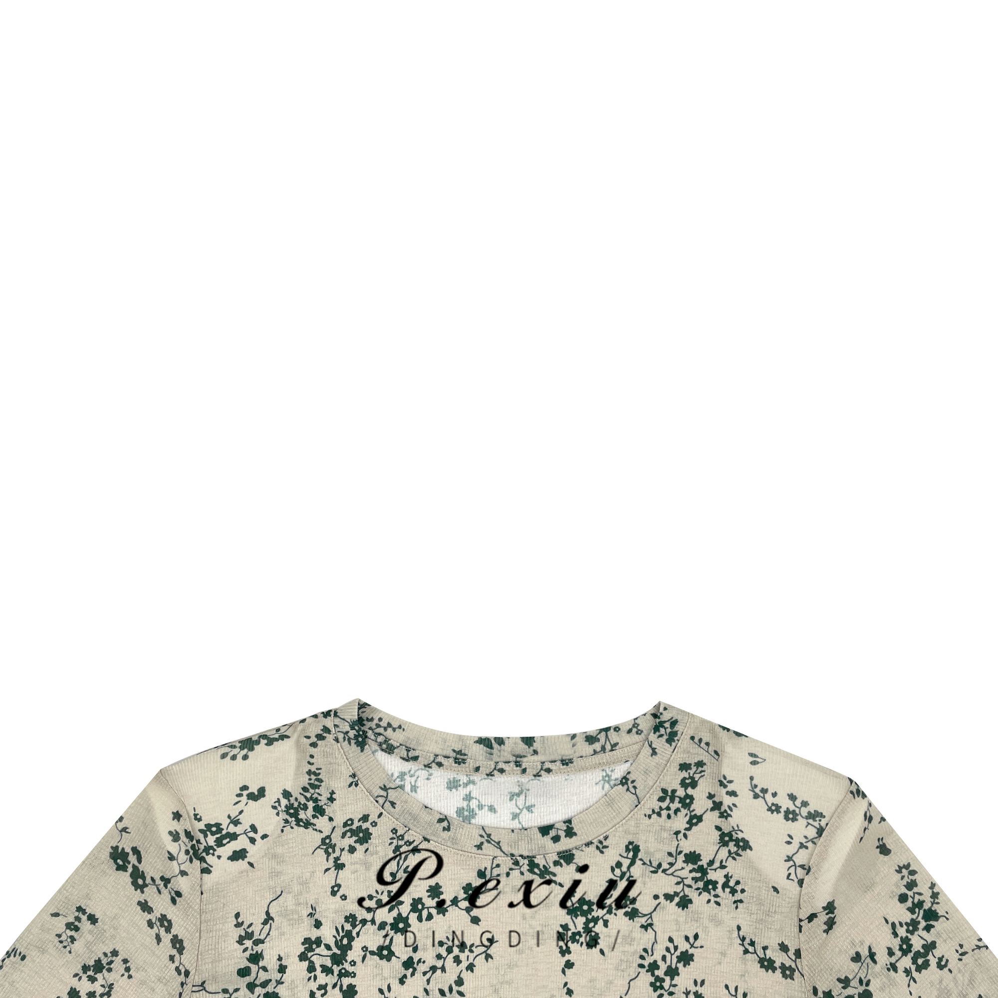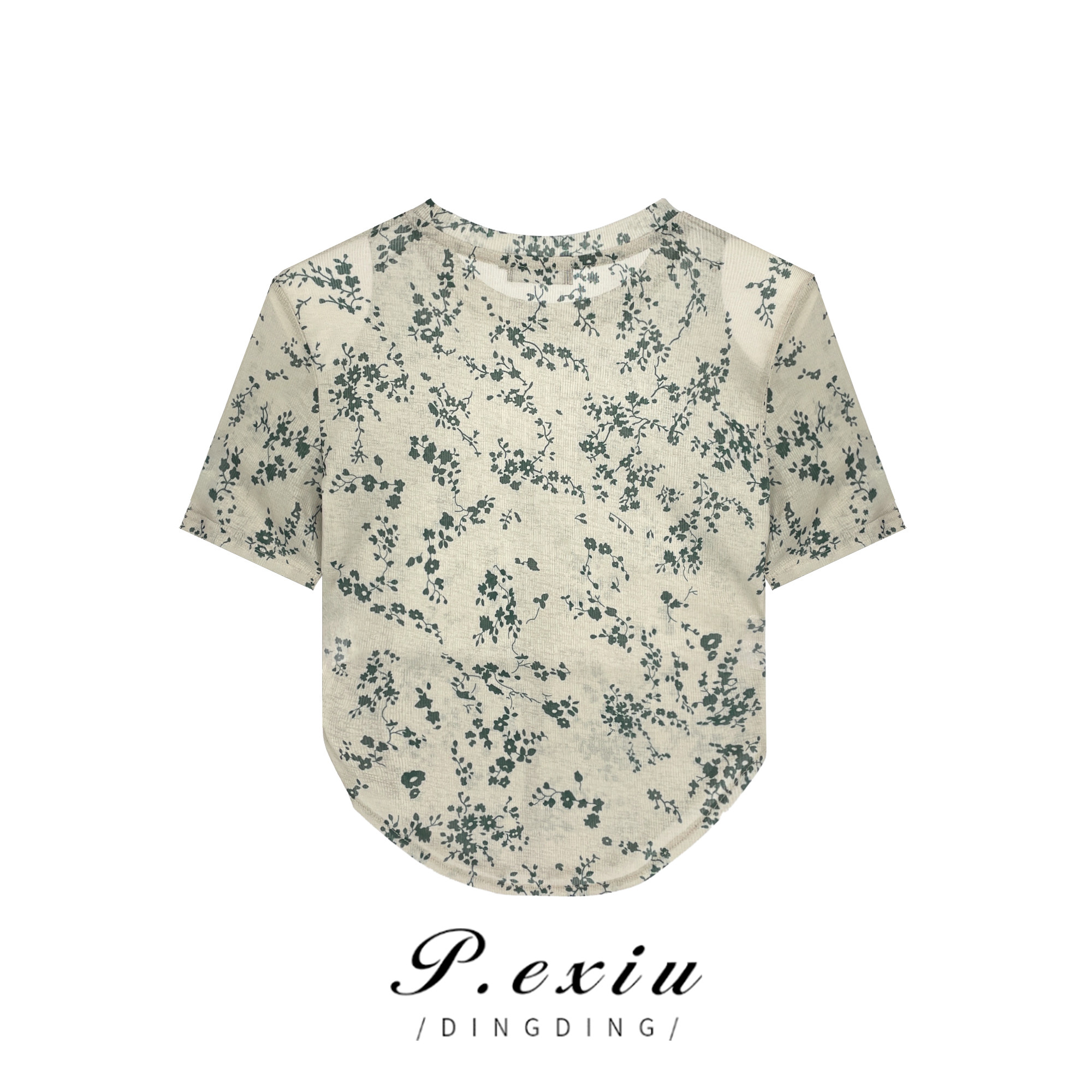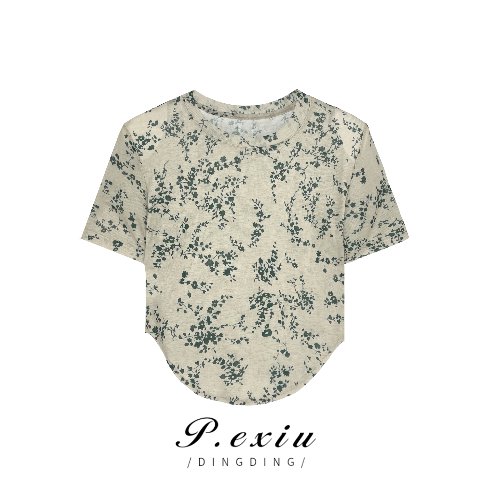 03-3潘依绣丁丁宠粉夏季新款碎花复古设计不规则圆领百搭T恤 K15188