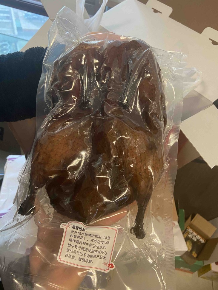 收到后,及时放冷冻保存,产品信息在鸭脖子处的标签