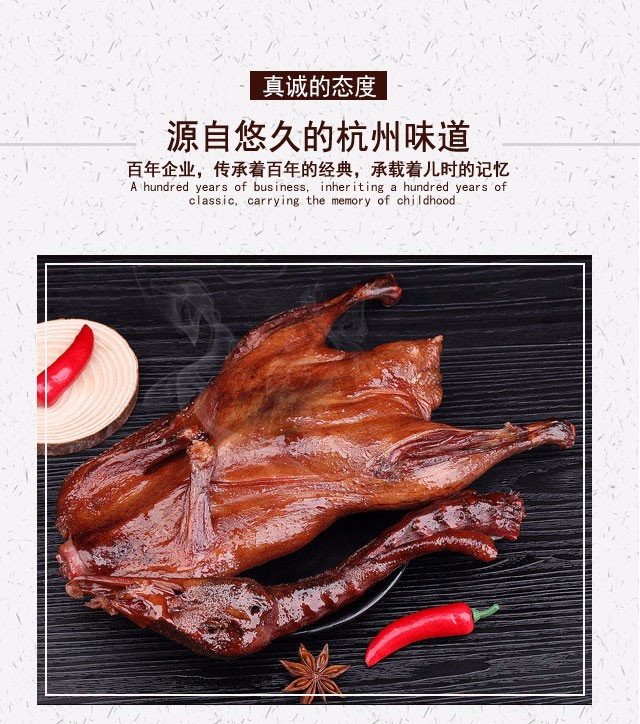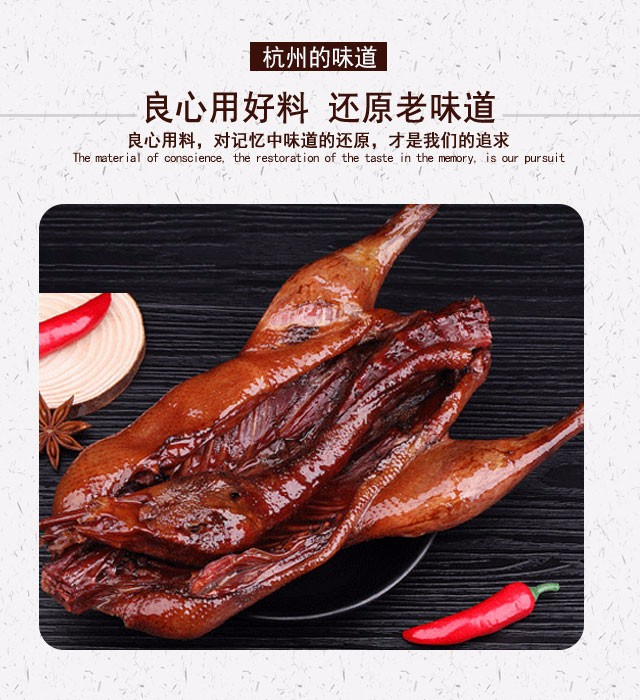 每一只鸭都经过严格的品质检测,经过三十多种调味品腌制,回味持久,并且进行多道科学高温杀菌,确保安全、色香味俱全。