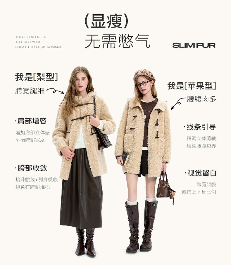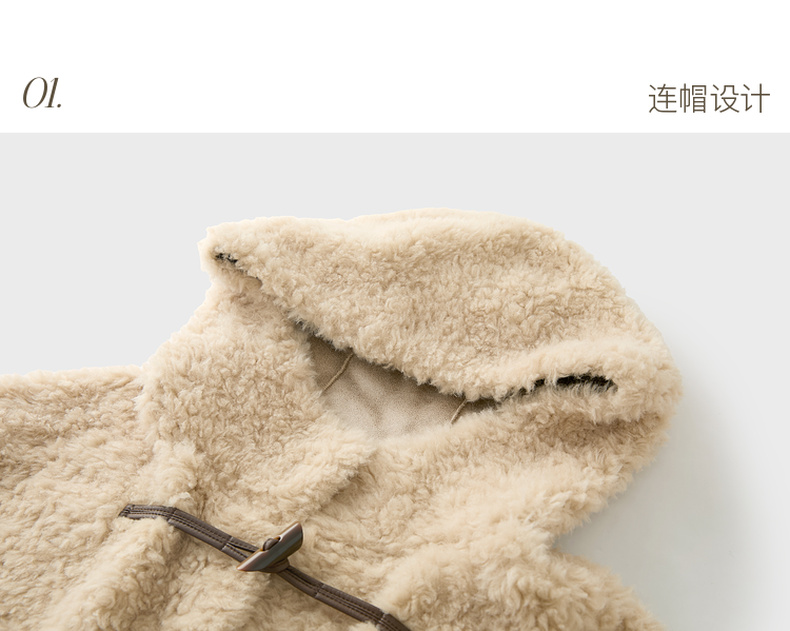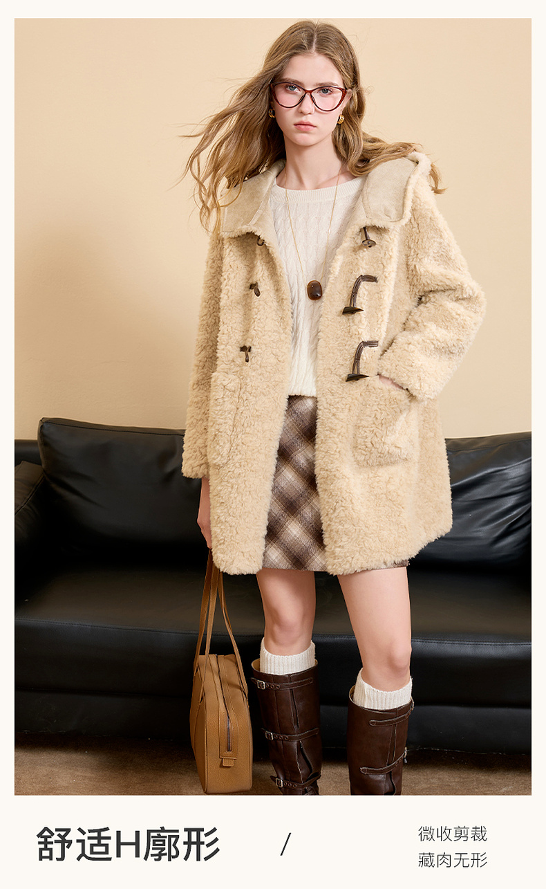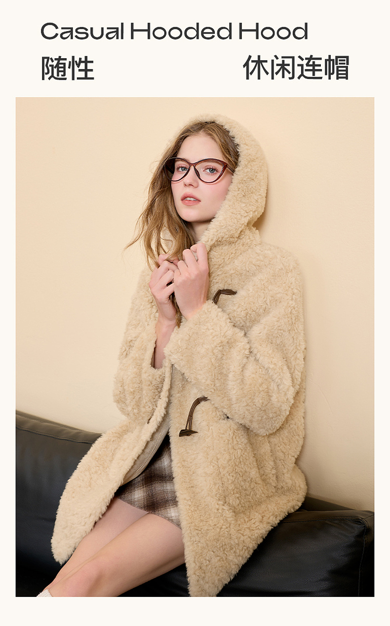 【100绵羊毛瘦瘦皮草】三彩2025冬季新款连帽毛毛外套牛角扣M