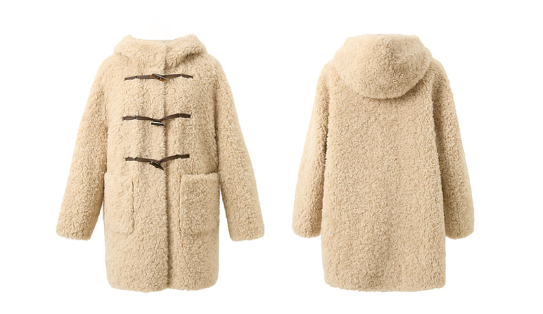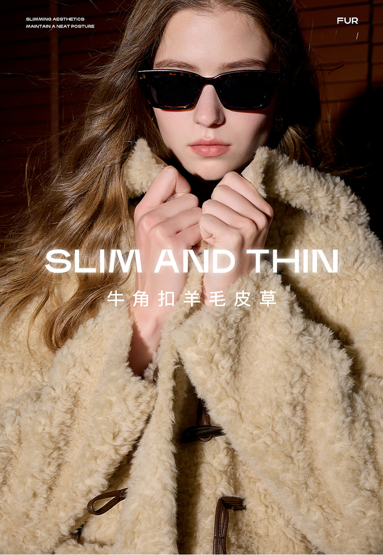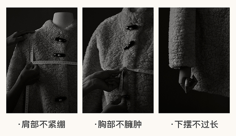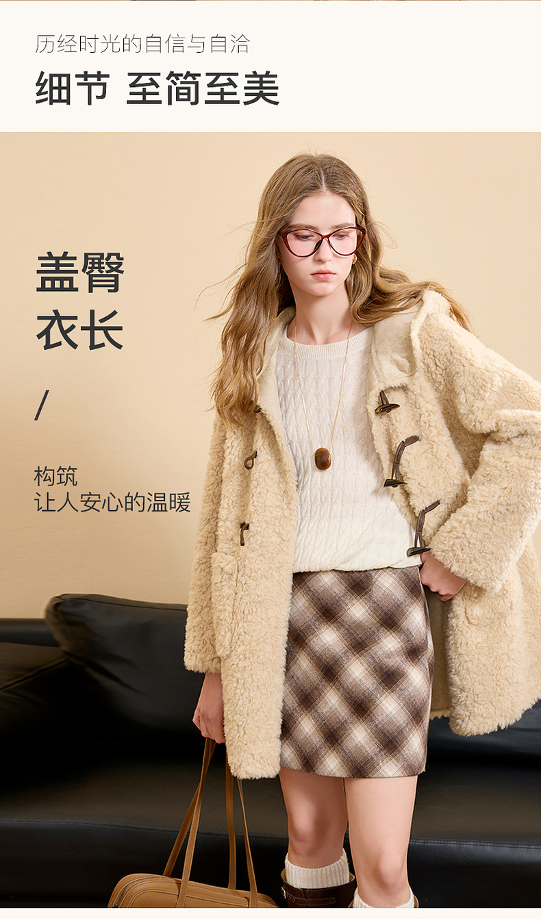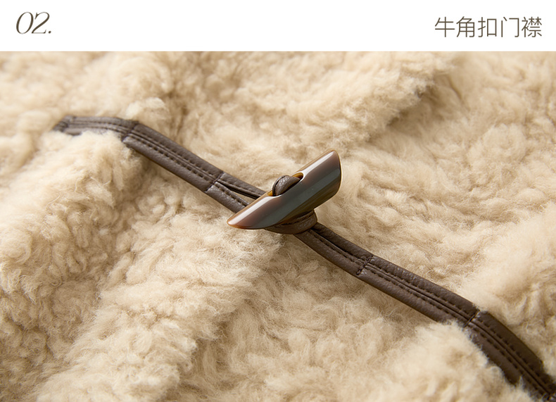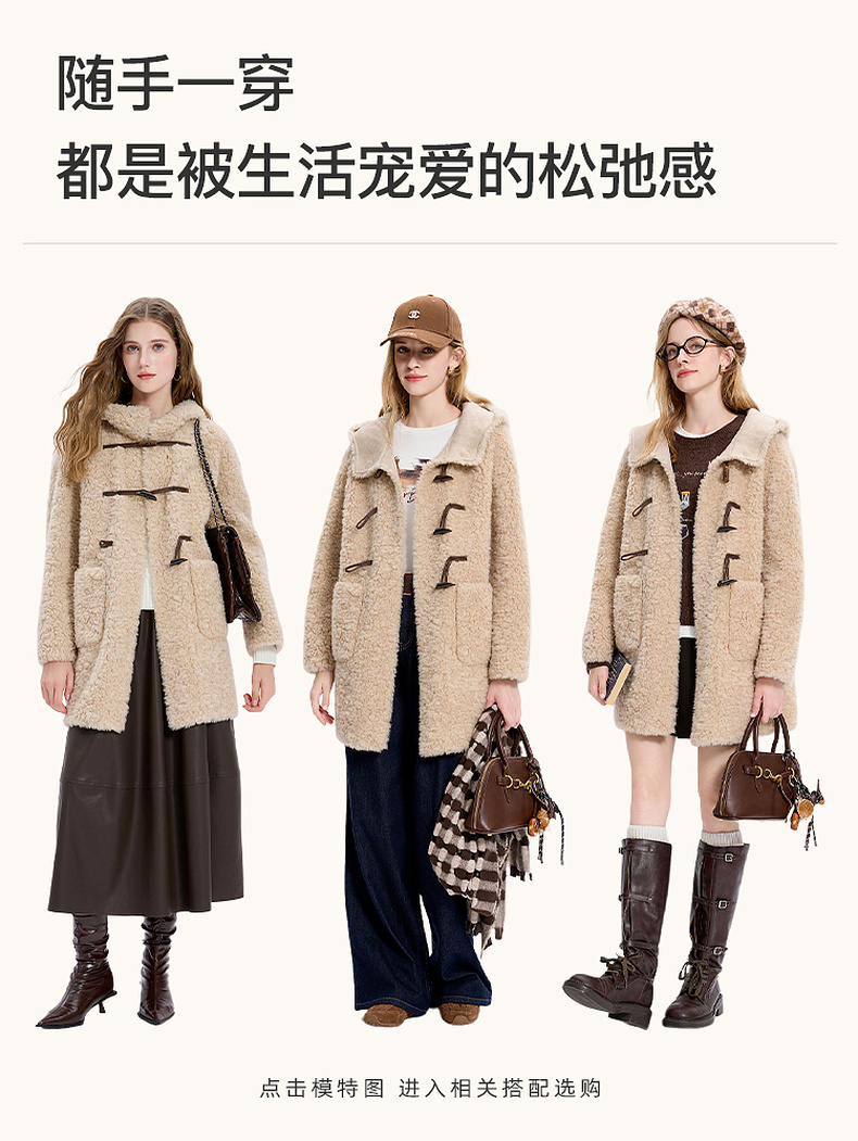 【100绵羊毛瘦瘦皮草】三彩2025冬季新款连帽毛毛外套牛角扣M