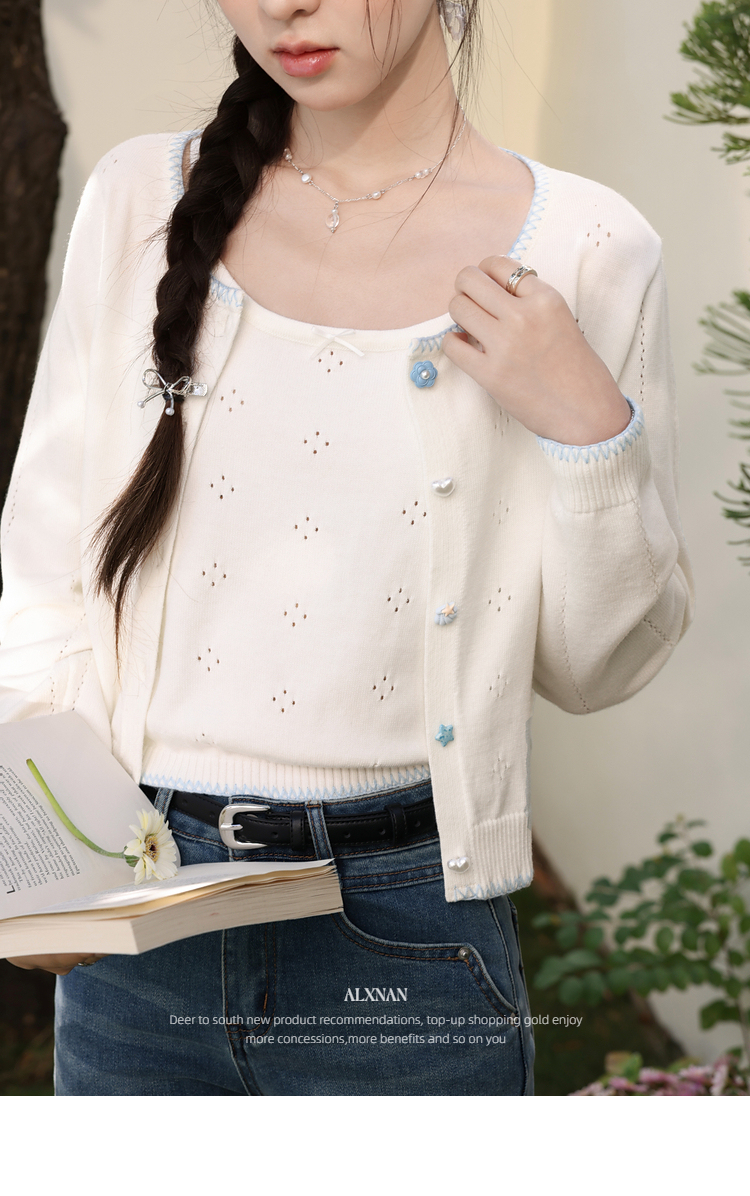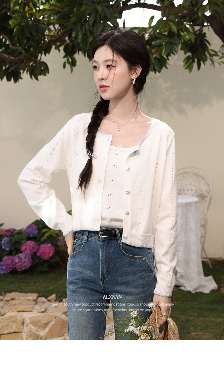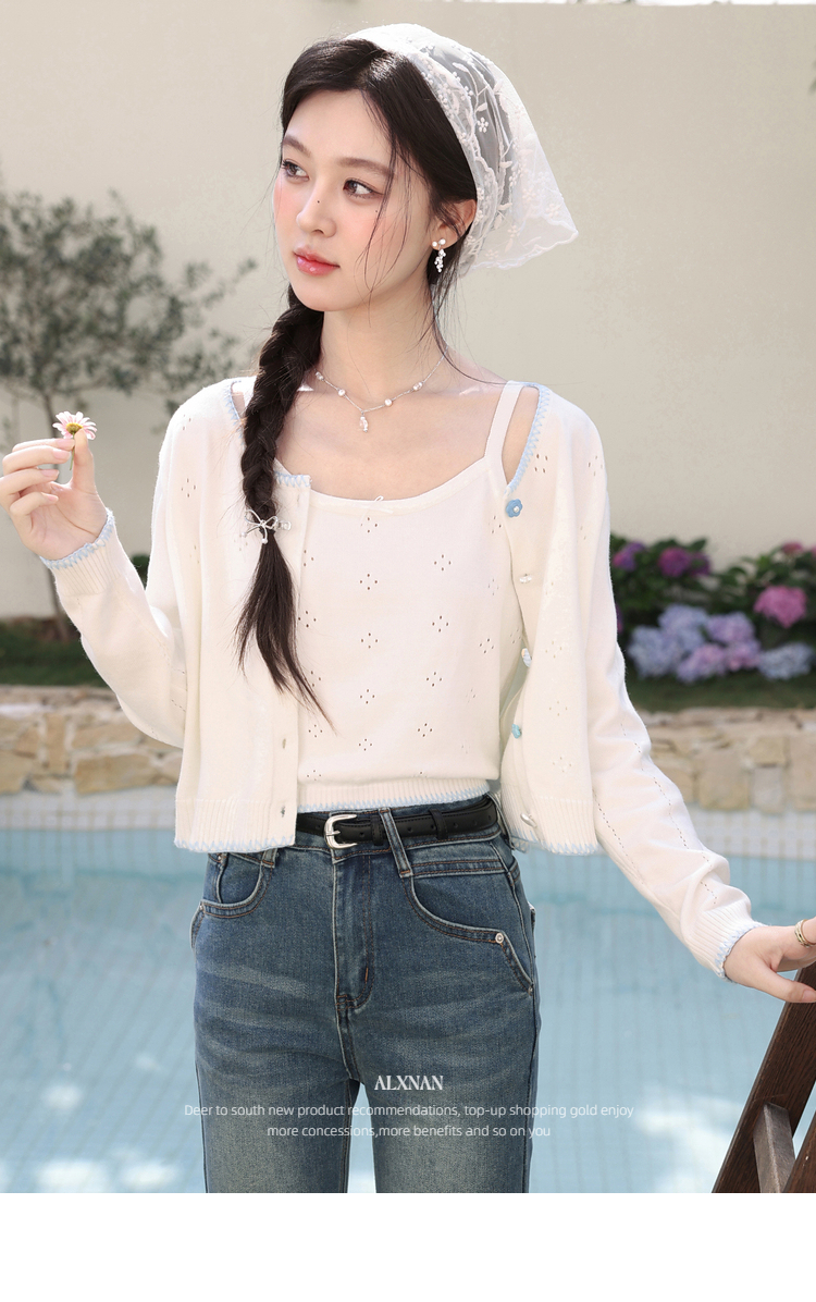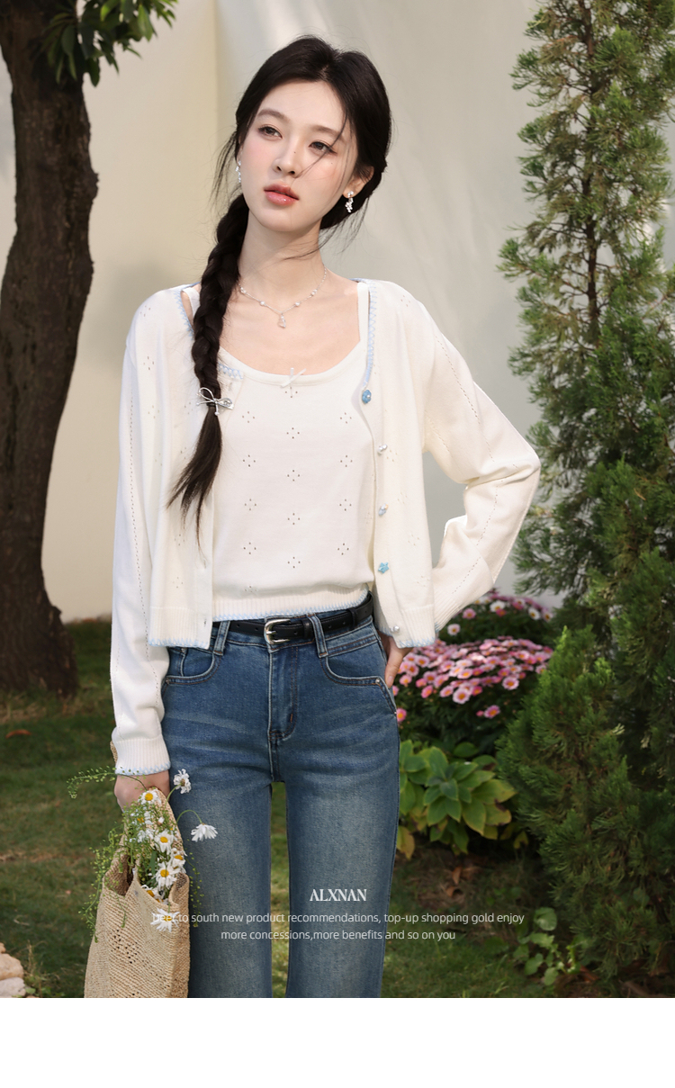 鹿向南「云蓝春序」米白色吊带针织衫女春季新款修身短款上衣