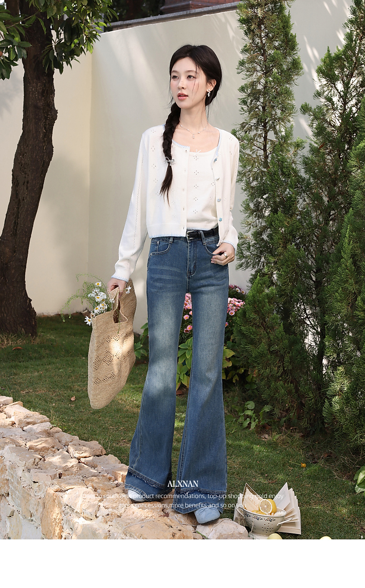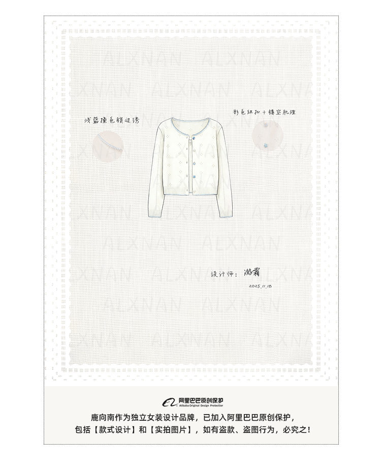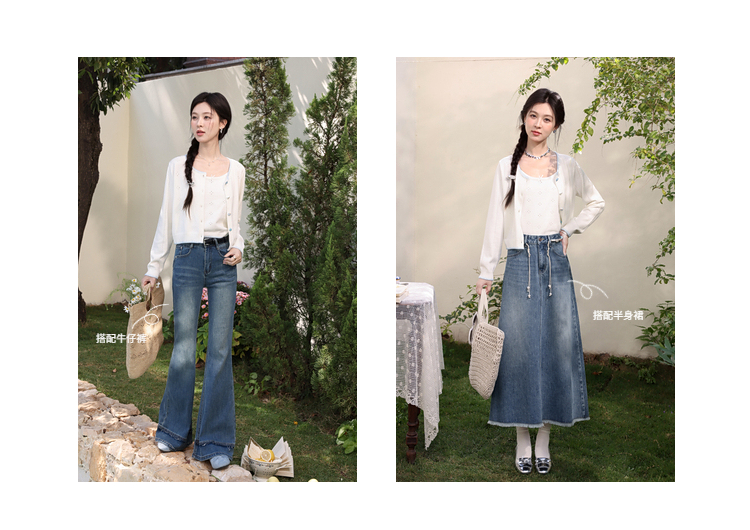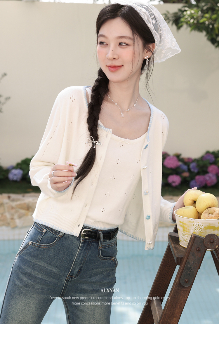 鹿向南「云蓝春序」米白色吊带针织衫女春季新款修身短款上衣