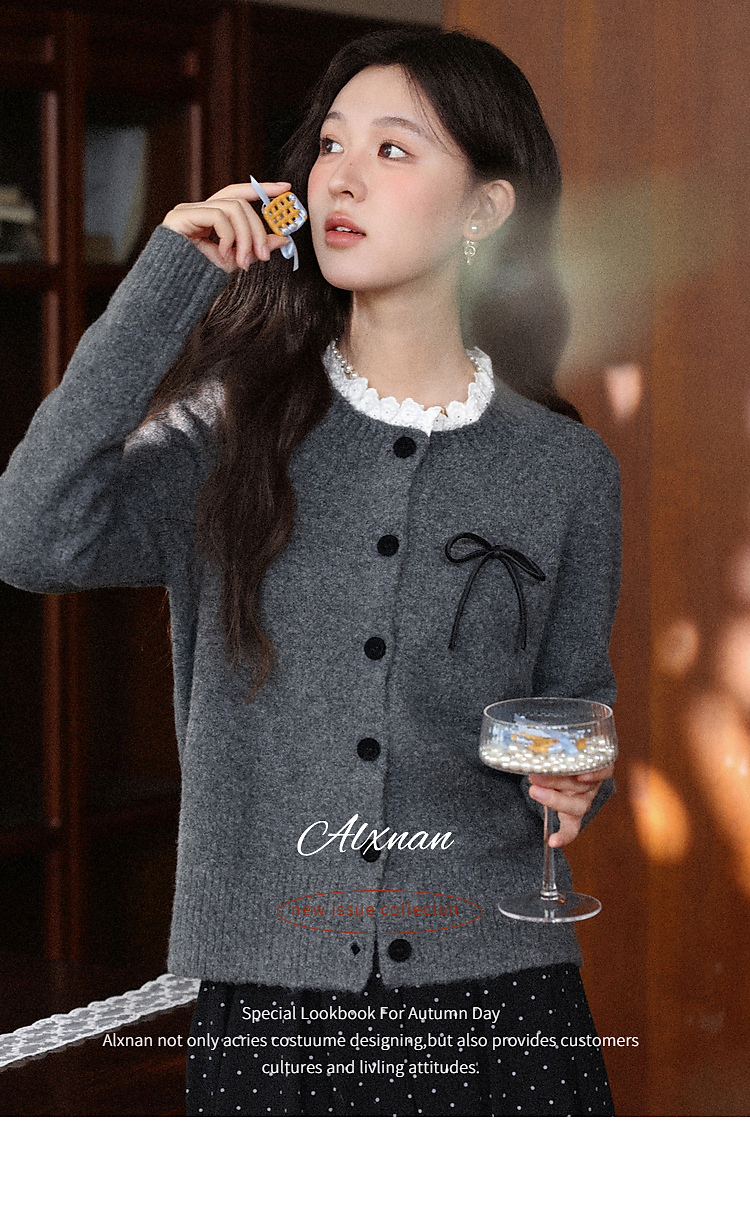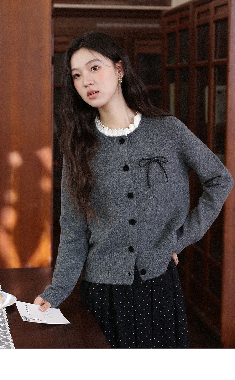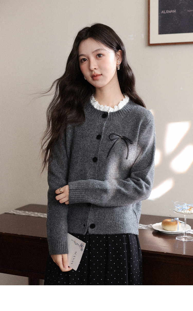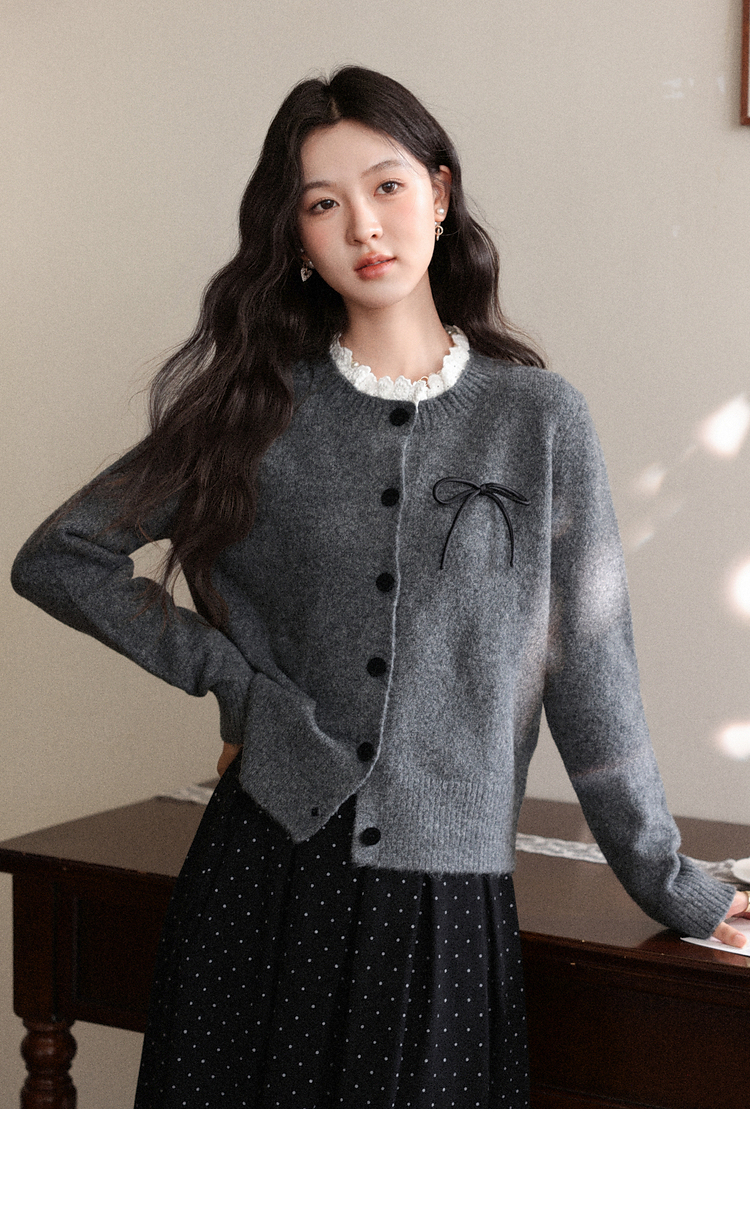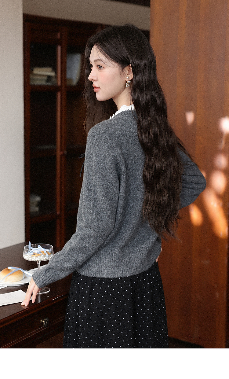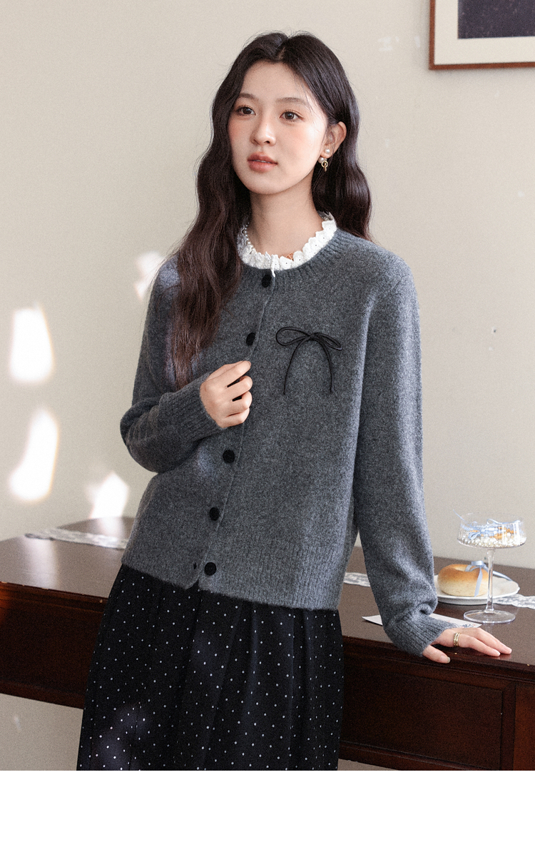 鹿向南「灰柏秋日」灰色长袖针织开衫女装秋季新款设计感宽松毛衣L58830