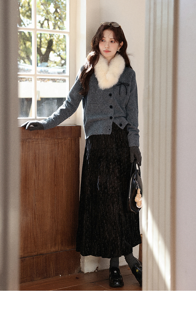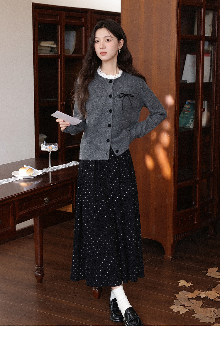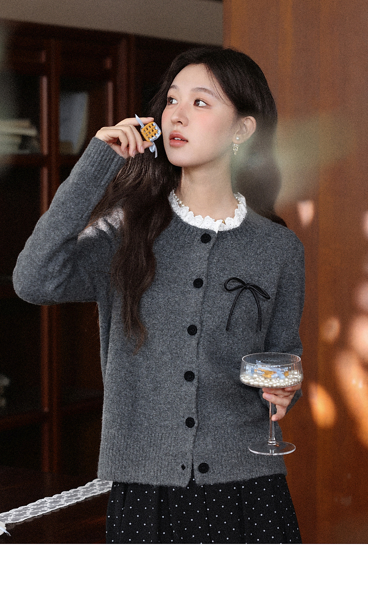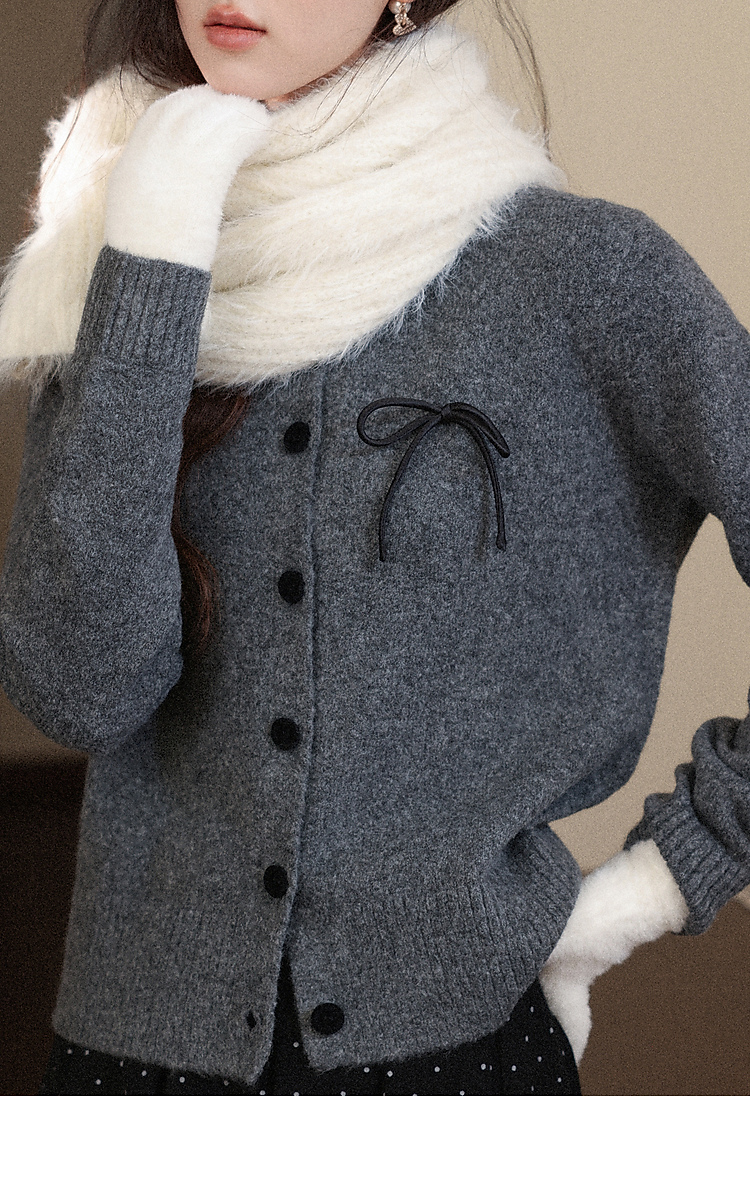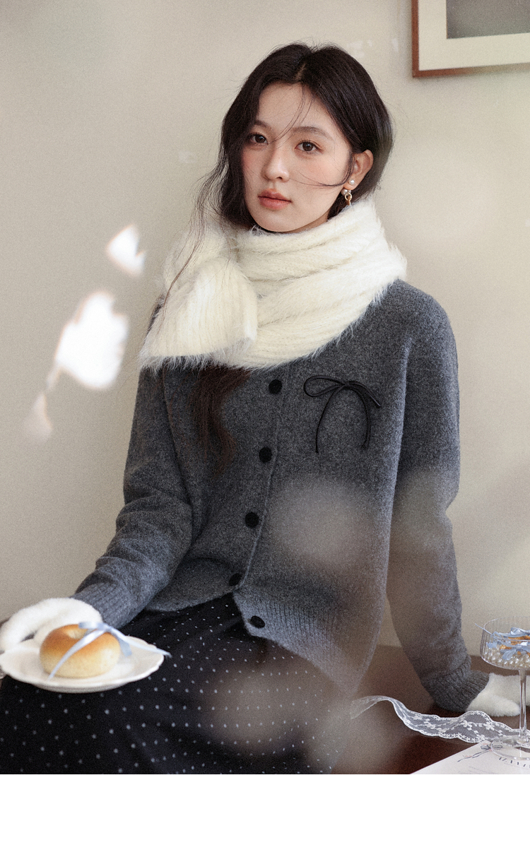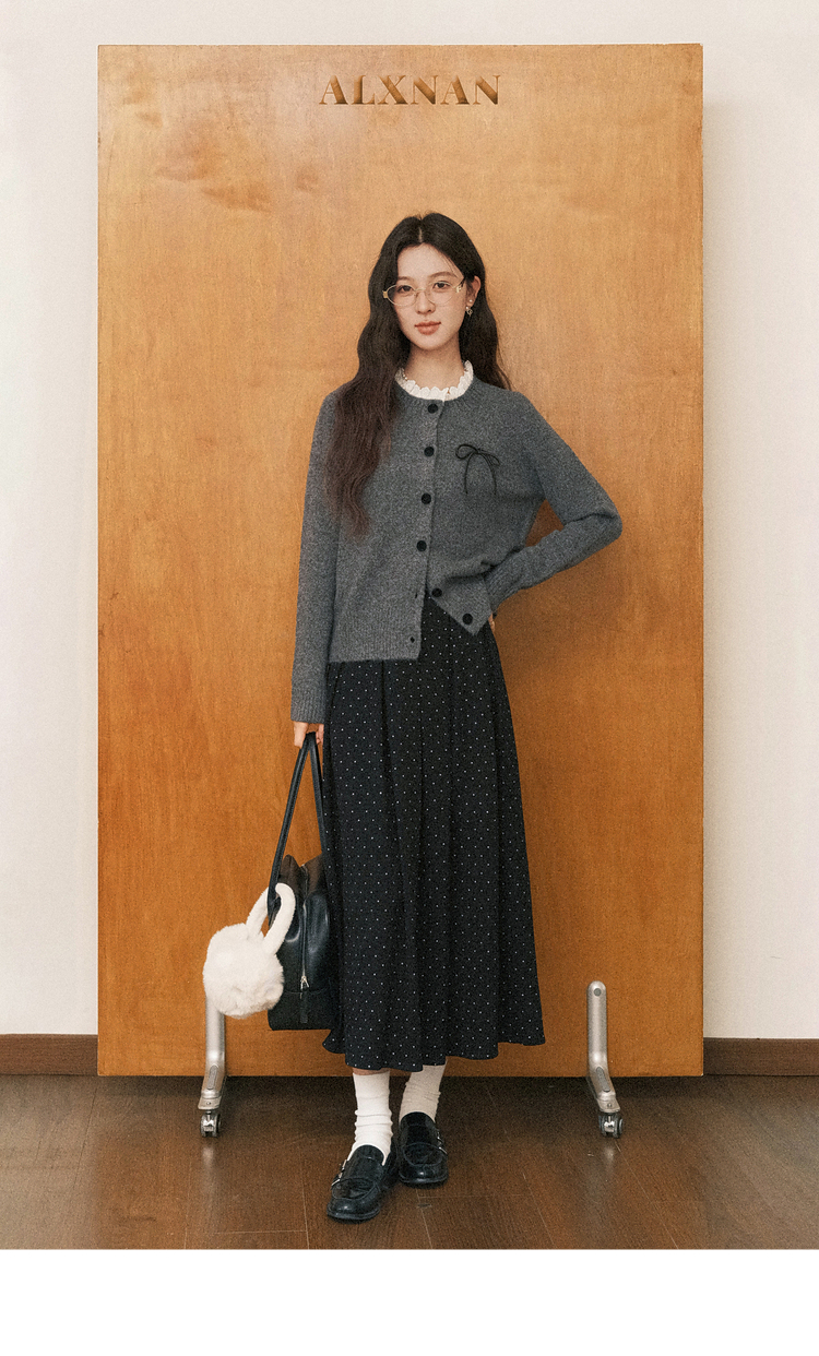 鹿向南「灰柏秋日」灰色长袖针织开衫女装秋季新款设计感宽松毛衣L58830