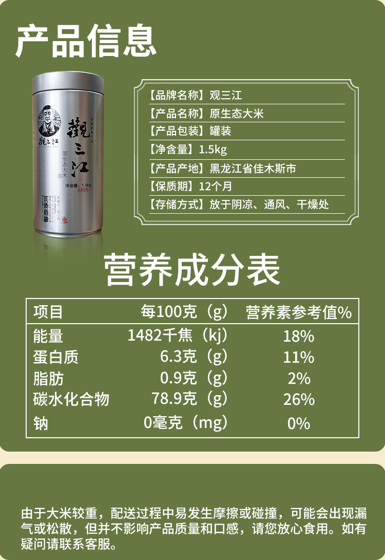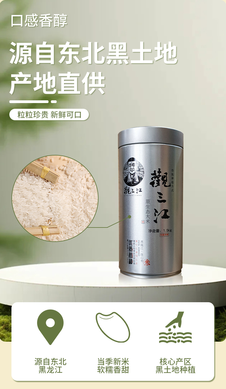 观三江精装原生态大米(充氮罐装)1.5kg—rxs
