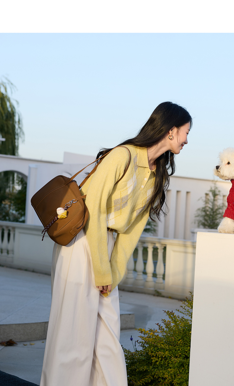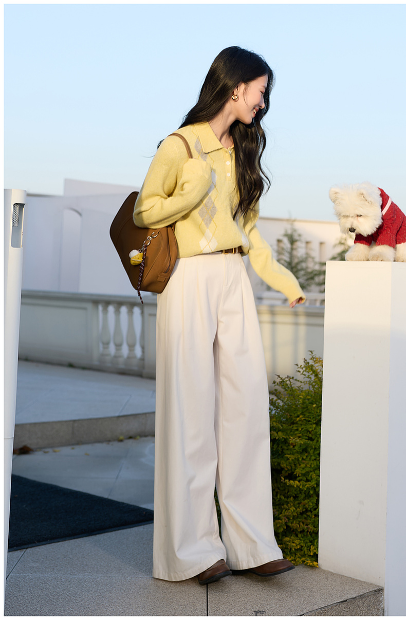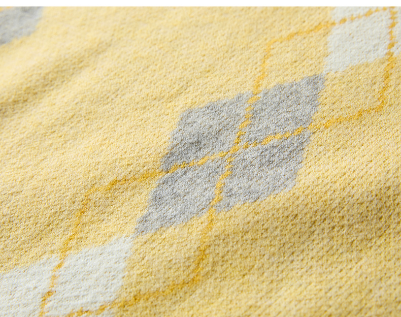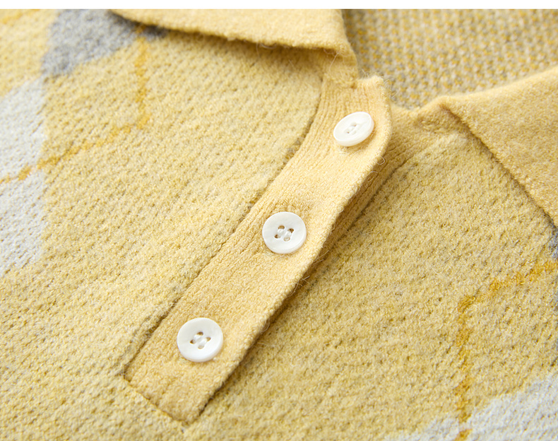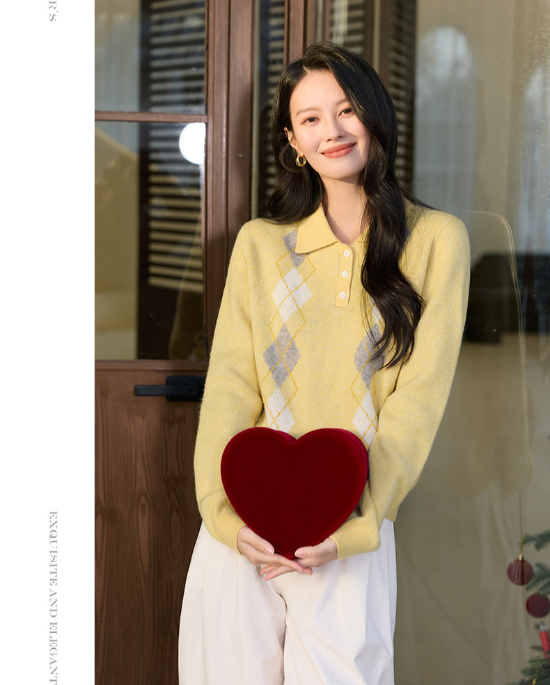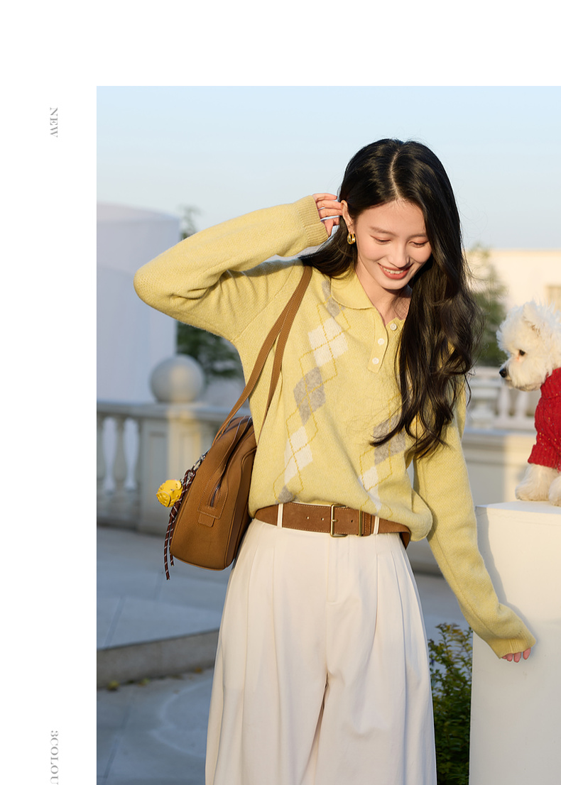 三彩2025冬季新款复古菱格纹Polo衫针织衫长袖套头毛衫上衣S