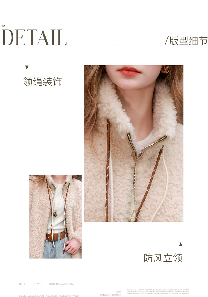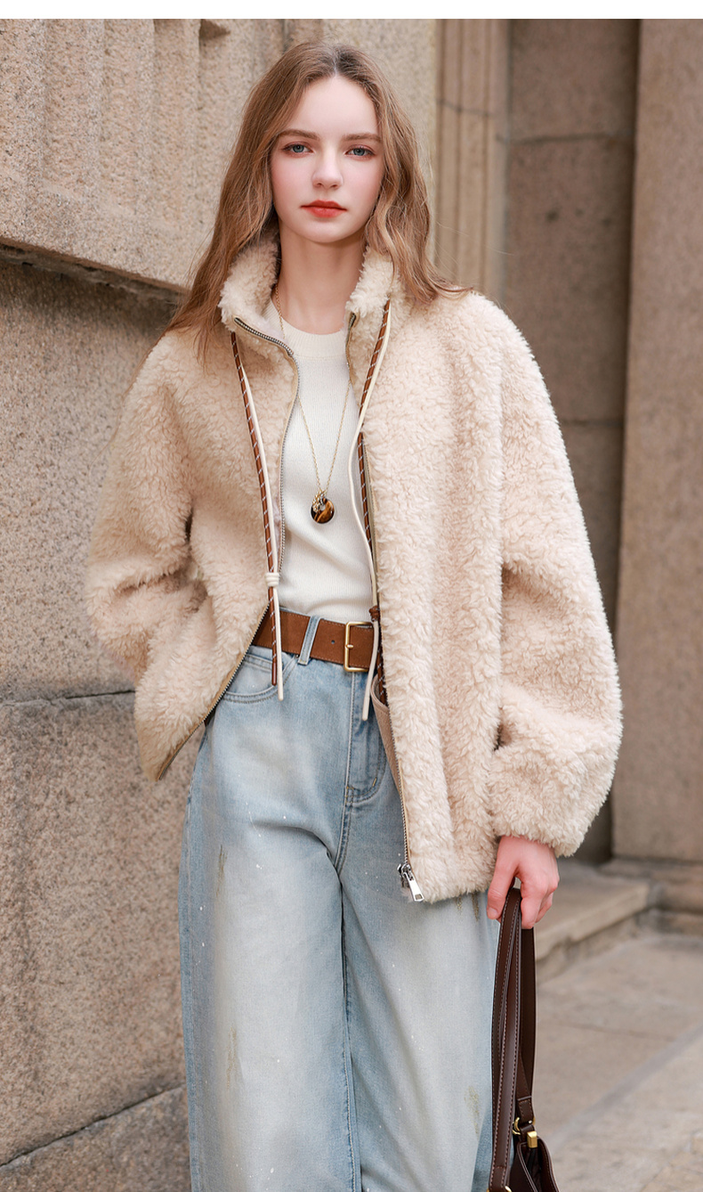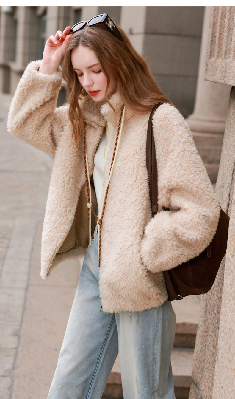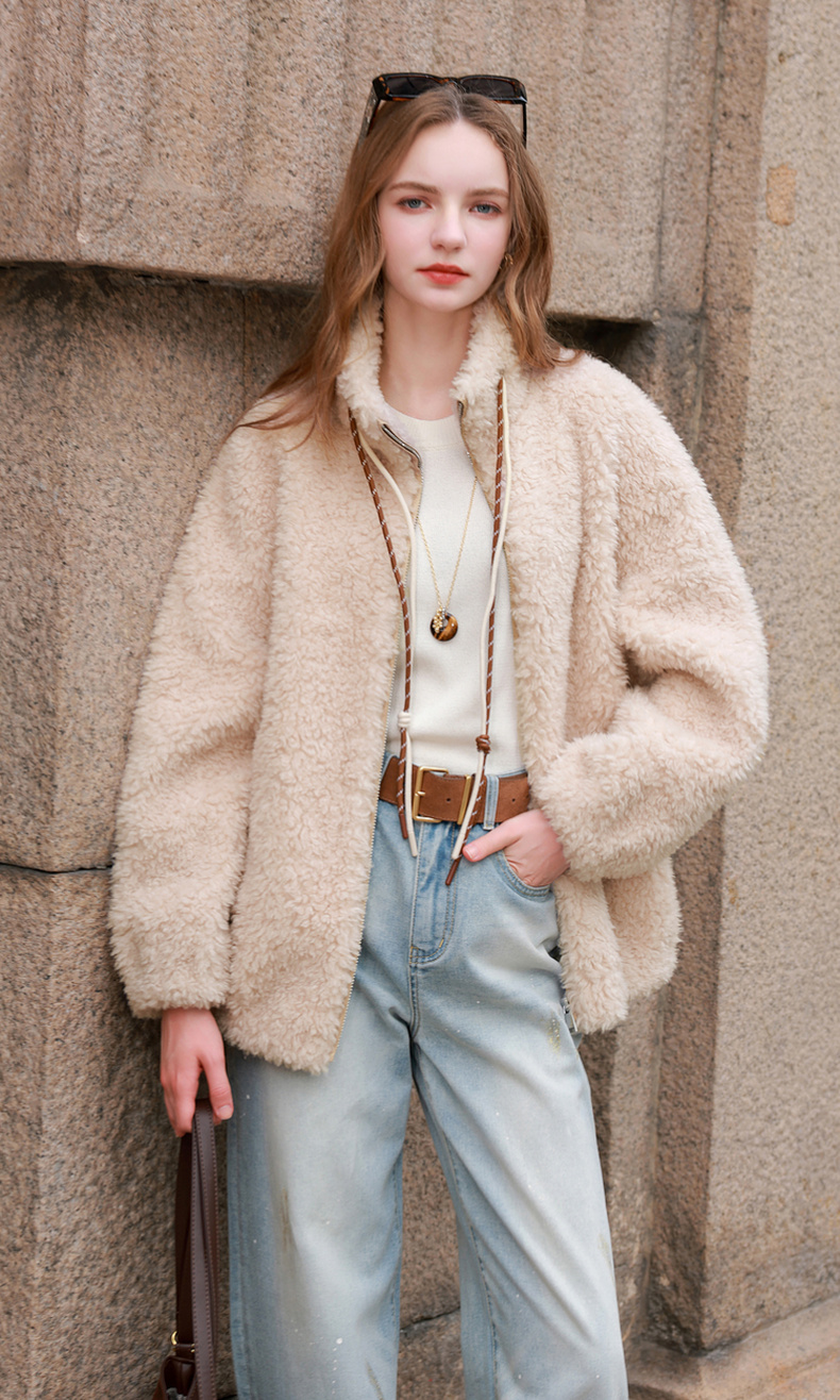 三彩2025冬季新款环保皮草立领毛毛外套宽松毛绒保暖M