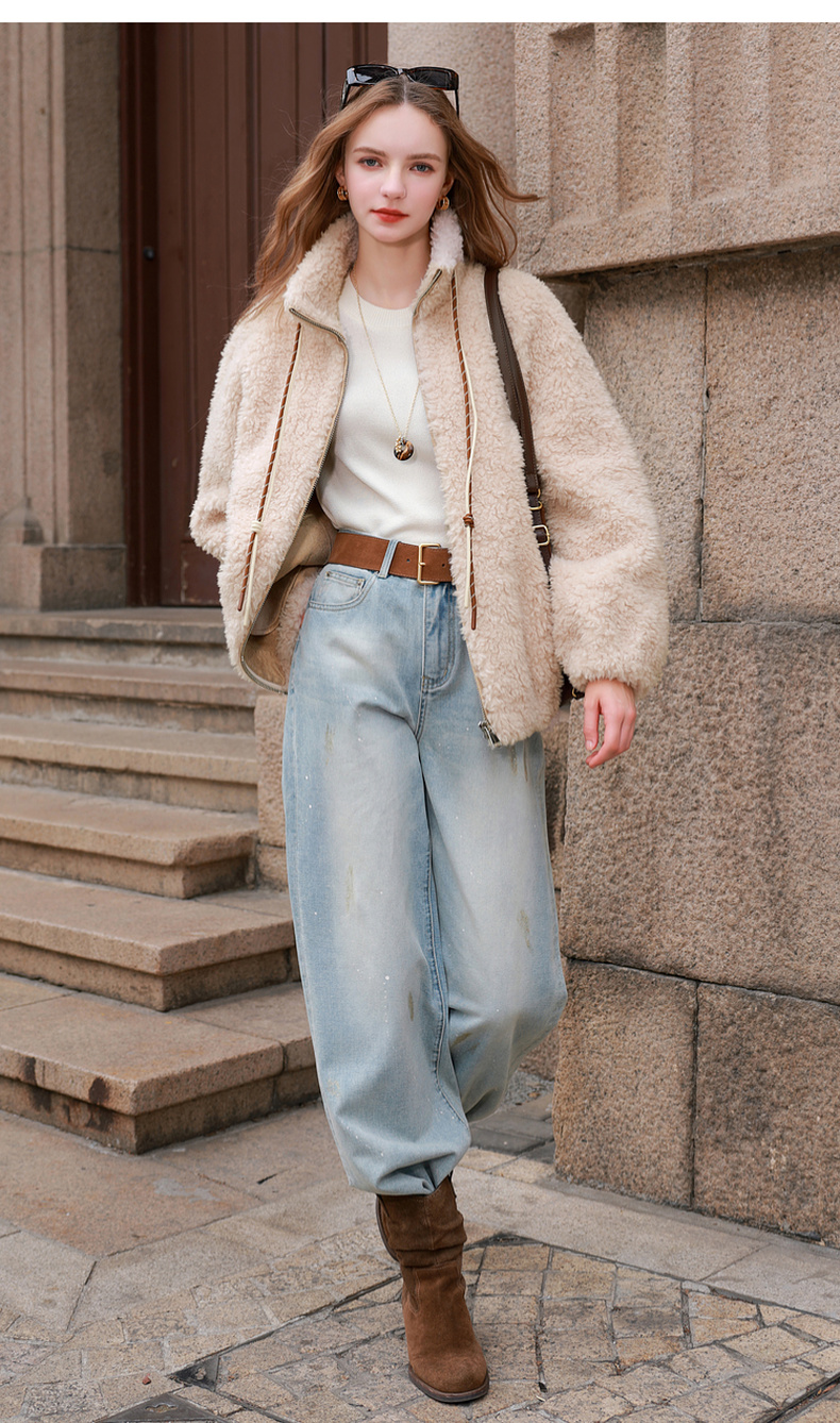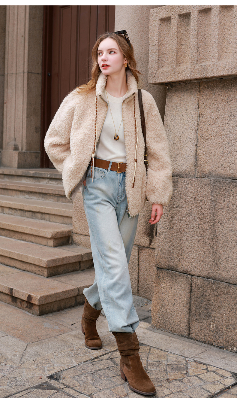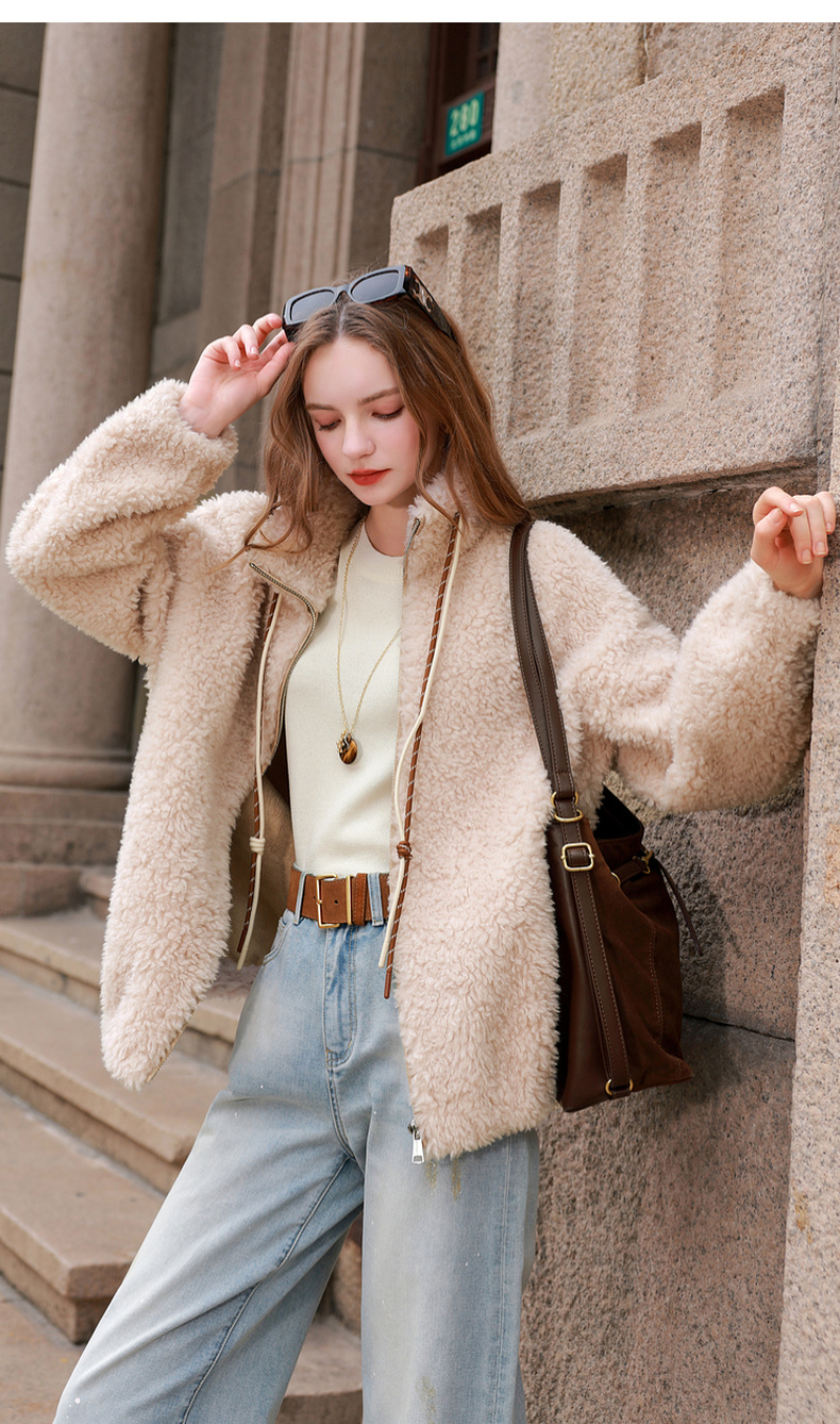 三彩2025冬季新款环保皮草立领毛毛外套宽松毛绒保暖M