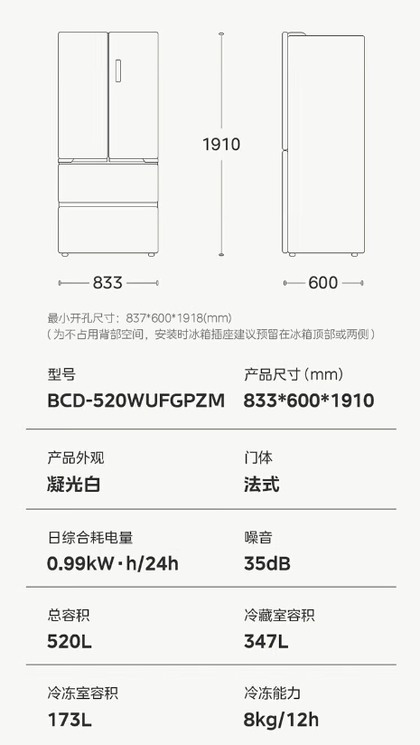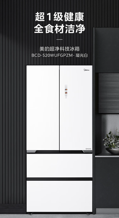 【限天津区域】美的/冰箱/BCD-520WUFGPZM凝光白