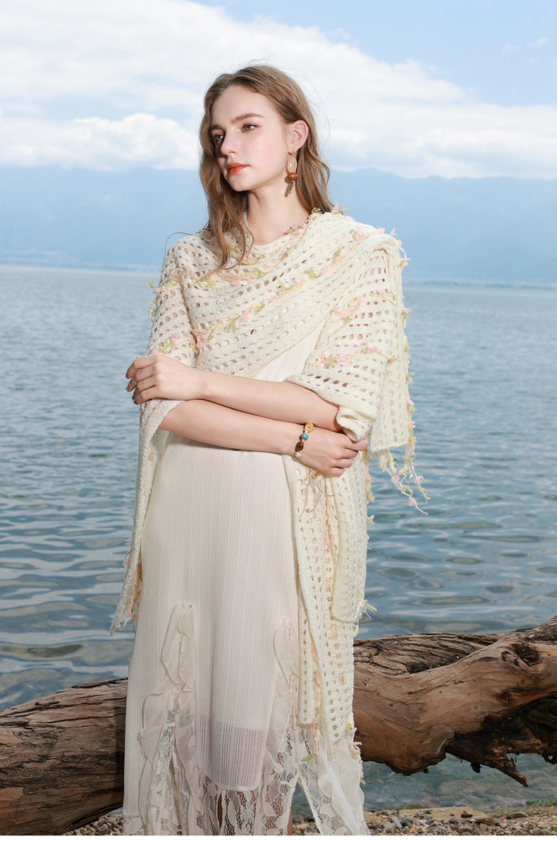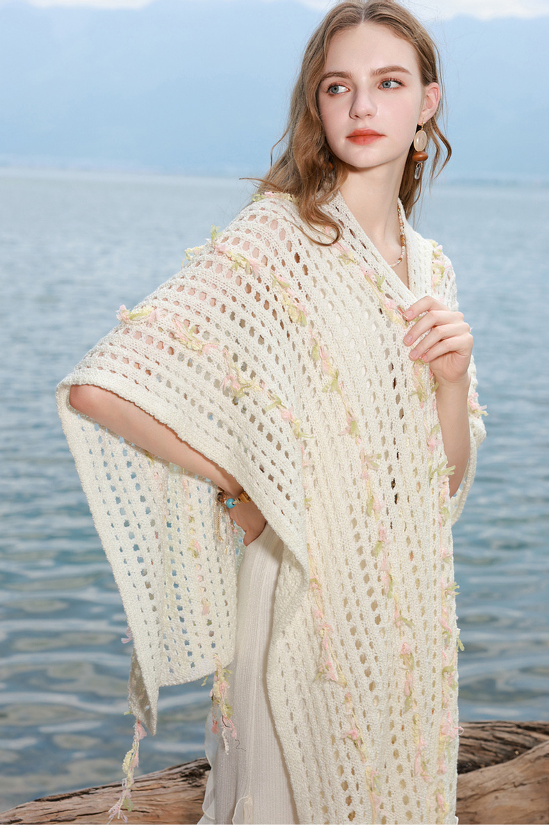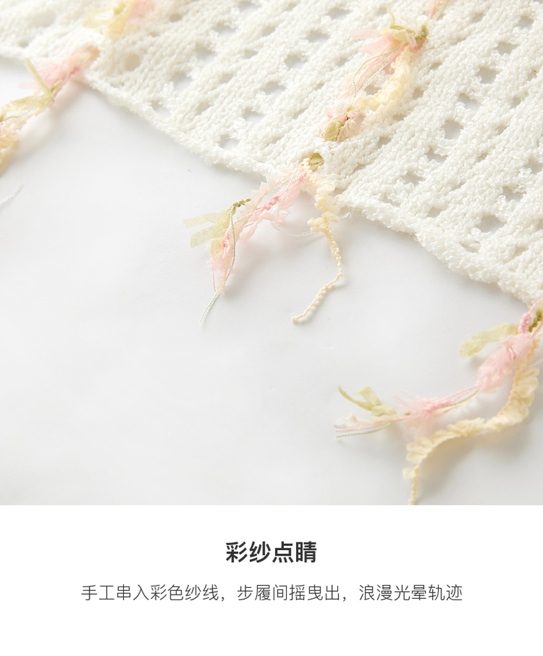 三彩2025新款波嬉风仙气温柔系镂空针织串纱披肩外搭女旅游度假