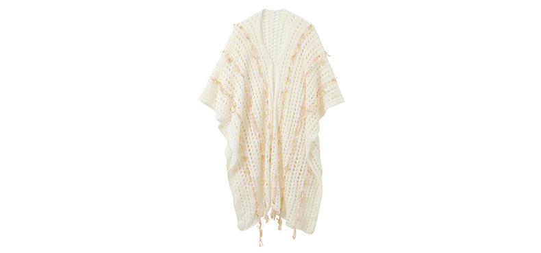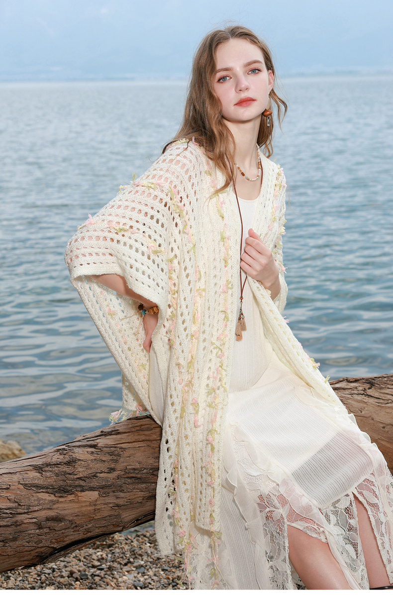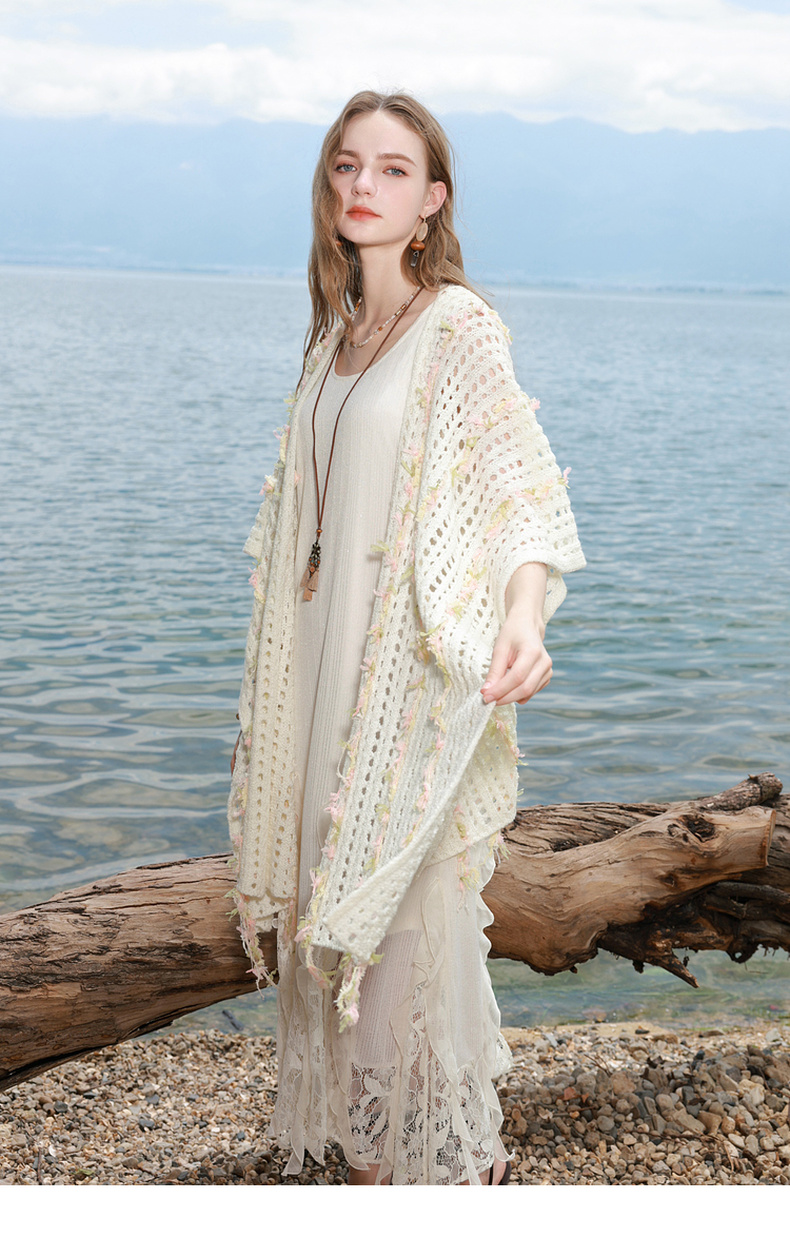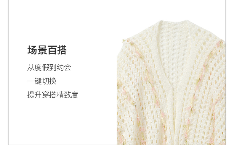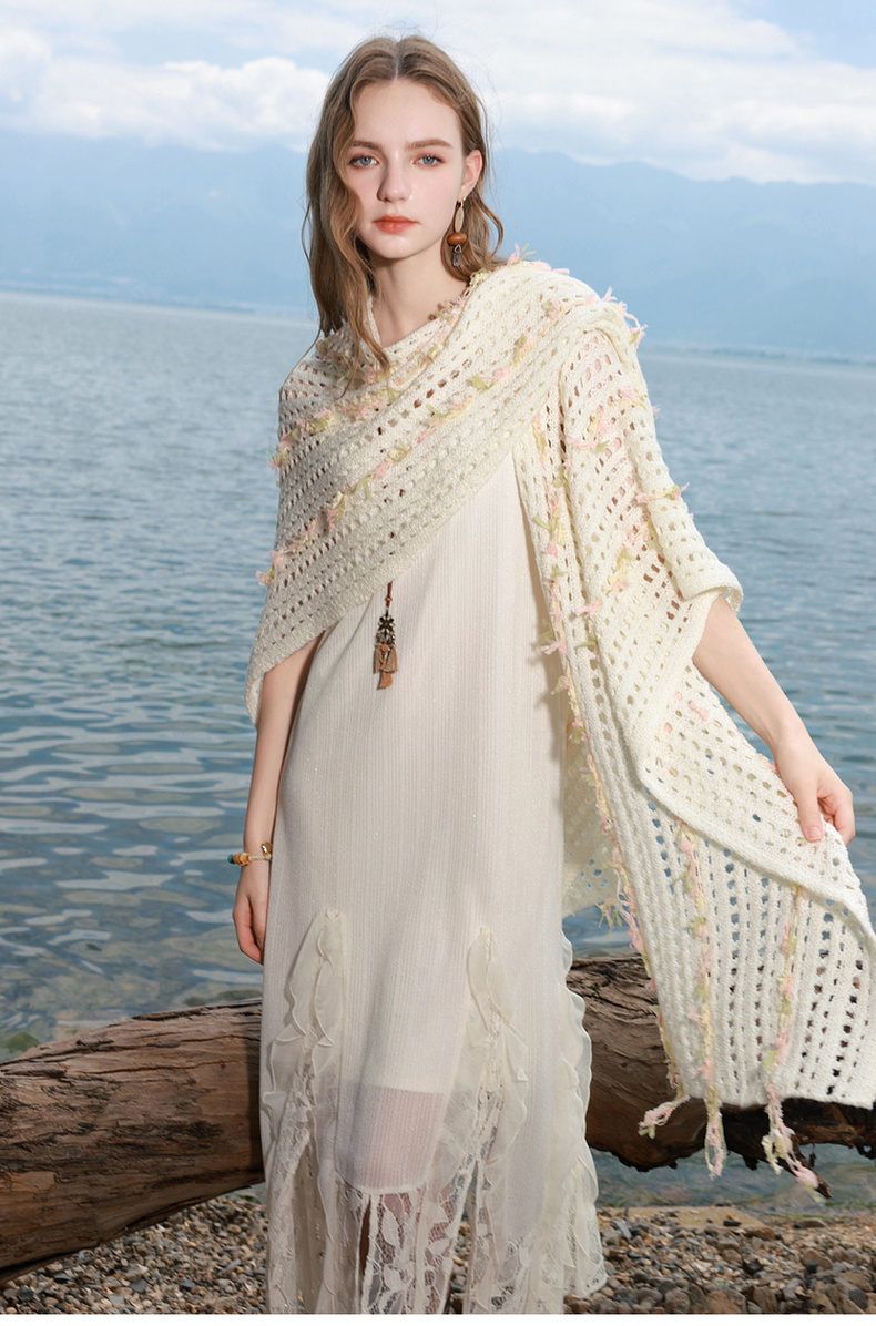 三彩2025新款波嬉风仙气温柔系镂空针织串纱披肩外搭女旅游度假